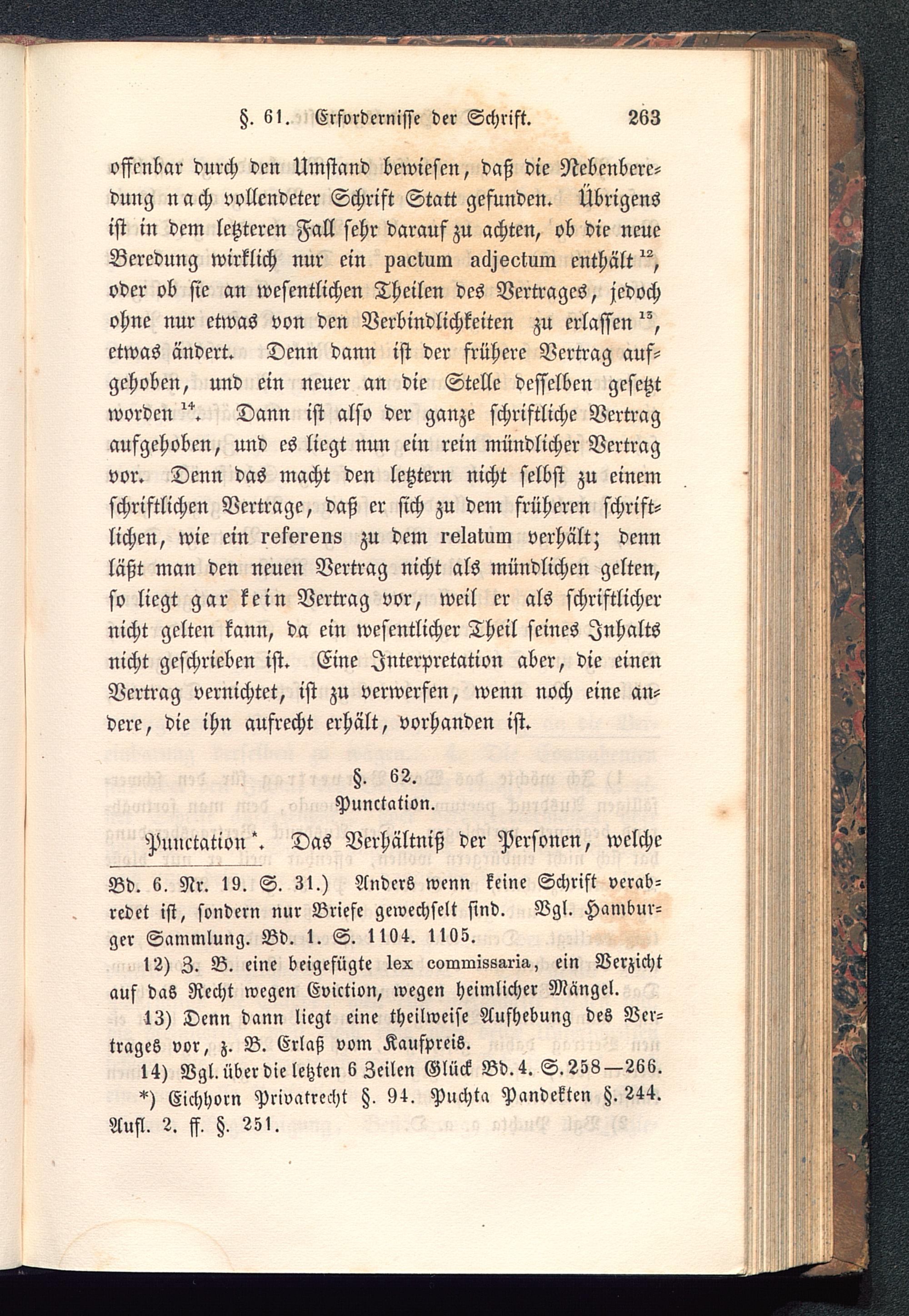 offenbar durch den Umstand bewiesen, daß die Nebenbcre-dung nach vollendeter Schrift Statt gefunden. Übrigensist in dem letzteren Fall sehr darauf zu achten, ob die neueBeredung wirklich nur ein puetum uchsolum enthält^,oder ob sie an wesentlichen Theilen des Vertrages, jedochohne nur etwas von den Verbindlichkeiten zu erlassenetwas ändert. Denn dann ist der frühere Vertrag auf-gehoben, und ein neuer an die Stelle desselben gesetztworden Dann ist also der ganze schriftliche Vertragaufgehoben, und es liegt nun ein rein mündlicher Vertragvor. Denn das macht den letztern nicht selbst zu einemschriftlichen Vertrage, daß er sich zu dem früheren schrift-lichen, wie ein rekvrens zu dem relutum verhält; dennläßt man den neuen Vertrag nicht als mündlichen gelten,so liegt gar kein Vertrag vor, weil er als schriftlichernicht gelten kann, da ein wesentlicher Theil seines Inhaltsnicht geschrieben ist. Eine Interpretation aber, die einenVertrag vernichtet, ist zu verwerfen, wenn noch eine an-dere, die ihn aufrecht erhält, vorhanden ist.
