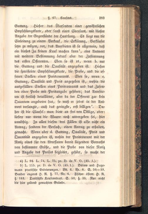 5) 4,. 115. pr. O. äs V. O. (45.1.). Bülow und Hagc-mann praktische Erörterungen. Bd. 6. Nr. 8. S. 56—59.Bcnder engeres H. R. h. 77. Nr. 6. Fischer österr. H. R.tz. 133. Treitschke Kaufcontract. S. 58. tz. 35. Nur nichtdie hier geltend gemachten Gründe.