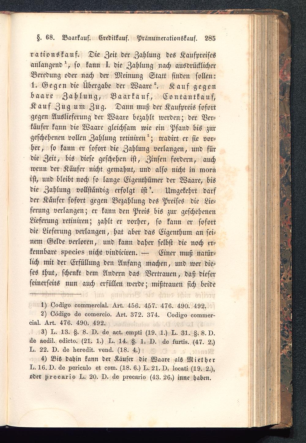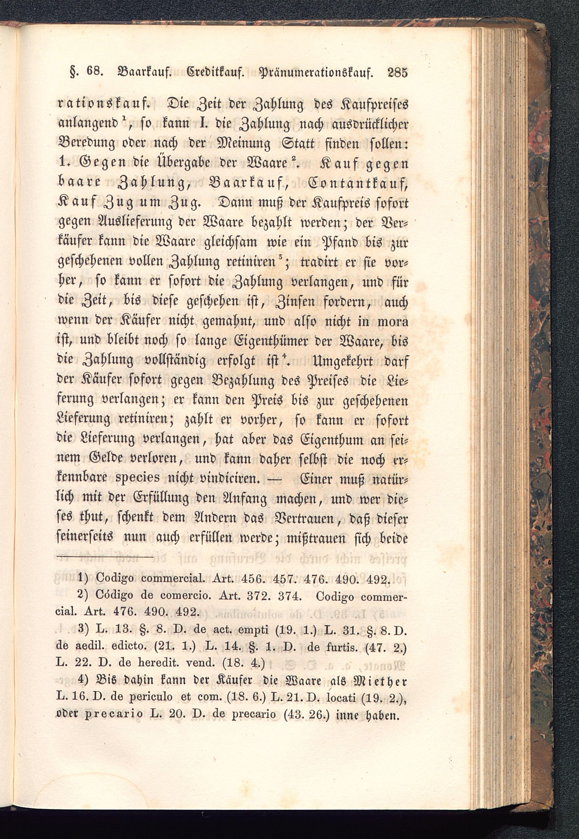 Z. 68. Baarkauf. Creditkauf. Pränuinerationskauf. 285