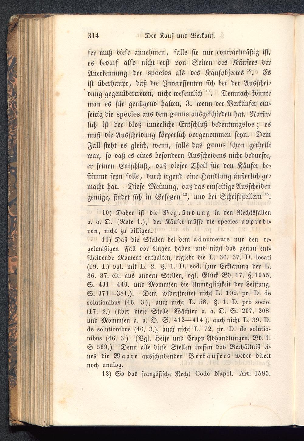 fer muß diese annehmen, falls sie nur coutractmäßig ist,es bedarf also nicht erst von Seiten des Käufers derAnerkennung der spocies als des Kaufobjektes Esist überhaupt, daß die Interessenten sich bei der Ausschei-dung gegenübertretcn, nicht wesentlich Demnach könnteman es für genügend halten, 3. wenn der Verkäufer ein-seitig die spoeios aus dem A6NUS ausgeschieden hat. Natür-lich ist der bloß innerliche Entschluß bedeutungslos; esmuß die Ausscheidung körperlich vorgenommen seyn. DemFall steht es gleich, wenn, falls das Aonus schon getheiltwar, so daß es eines besondern Ausscheidens nicht bedürfte,er seinen Entschluß, daß dieser Theil für den Käufer be-stimmt seyn solle, durch irgend eine Handlung äußerlich ge-macht hat. Diese Meinung, daß das einseitige Ausscheidengenüge, findet sich in Gesetzen und bei Schriftstellern