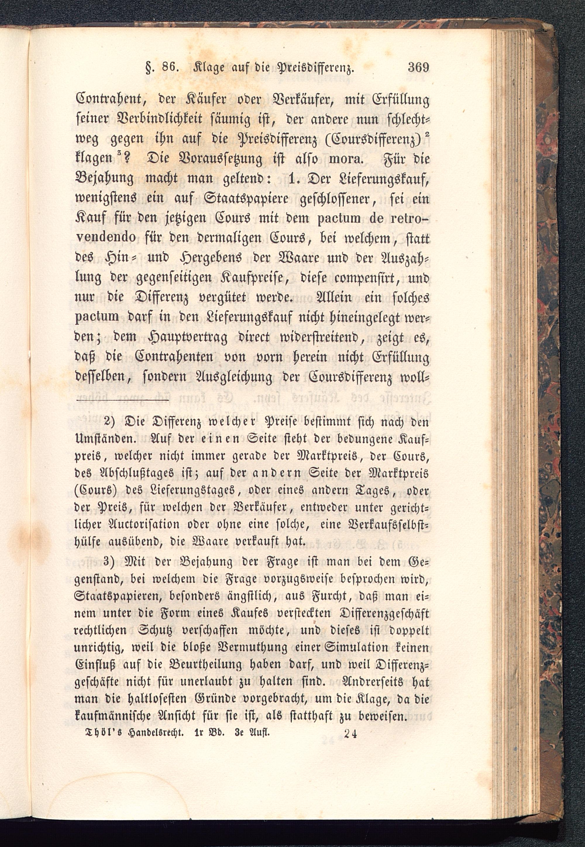 Contrahent, der Käufer oder Verkäufer, mit Erfüllungseiner Verbindlichkeit säumig ist, der andere nun schlecht-weg gegen ihn auf die Preisdifferenz (Coursdifferenz) ^klagen^? Die Voraussetzung ist also mors. Für dieBejahung macht man geltend: 1. Der Lieferungskauf,wenigstens ein auf Staatspapiere geschlossener, sei einKauf für den jetzigen Cours mit dem paetum äo rotro-vontlknüo für den dermaligen Cours, bei welchem, stattdes Hin- und Hergebens der Waare und der Auszah-lung der gegenseitigen Kaufpreise, diese compensirt, undnur die Differenz vergütet werde. Allein ein solchespuelum darf in den Lieferungskauf nicht hineingelegt wer-den; dem Hauptvertrag direct widerstreitend, zeigt es,daß die Contrahenten von vorn herein nicht Erfüllungdesselben, sondern Ausgleichung der Coursdifferenz woll-