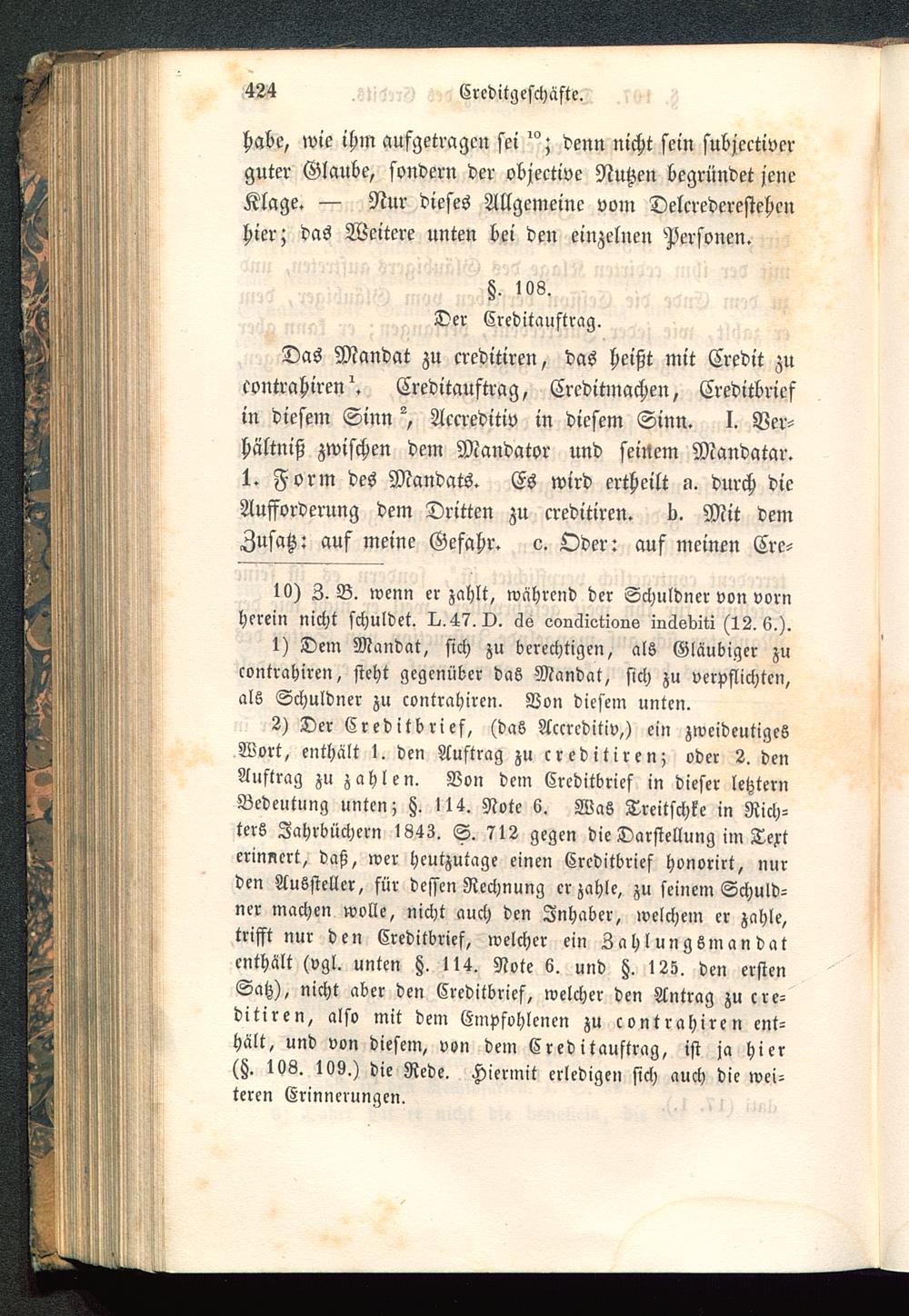 2) Der Creditbrief, (das Accreditiv,) ein zweideutigesWort, enthält l. den Auftrag zu creditiren; oder 2. denAuftrag zu zahlen. Von dem Creditbricf in dieser letzternBedeutung unten; tz. 114. Note 6. Was Treitschke in Rich-ters Jahrbüchern 1843. S. 712 gegen die Darstellung im Texterinnert, daß, wer heutzutage einen Kreditbrief honorirt, nurden Aussteller, für dessen Rechnung erzähle, zu seinem Schuld-ner machen wolle, nicht auch den Inhaber, welchem er zahle,trifft nur den Creditbrief, welcher ein Zahlungsmandatenthält (vgl. unten tz. 114. Note 6. und h. 125. den erstenSatz), nicht aber den Creditbrief, welcher den Antrag zu cre-ditiren, also mit dem Empfohlenen zu contrahiren ent-hält, und von diesem, von dem Creditauftrag, ist ja hier(Z. 108. 109.) die Rede. Hiermit erledigen sich auch die wei-teren Erinnerungen.