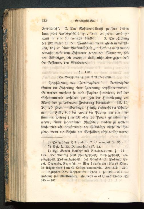 l) Vgl. Bender Verkehr mit Staatspapieren. §. llll —l96. Der Vertrag heißt Pfandgeschäft, Versatzgeschäft, De-potgeschäft, Deckungsgeschäft; das Pfandobject.- Deckung, De-pot, Deponade, Gegensatz.— Über kaufmännisches Pfandim Allgemeinen handelt LockiKv eoinrvsroial. ^,rt. 312—320.— Ungrischcr XV. Gesetzartikel. Theil I. tz. >93 — 299. —Entwurf für Württemberg. Art. 499 —4l 5. und Motive S.365 — 367.