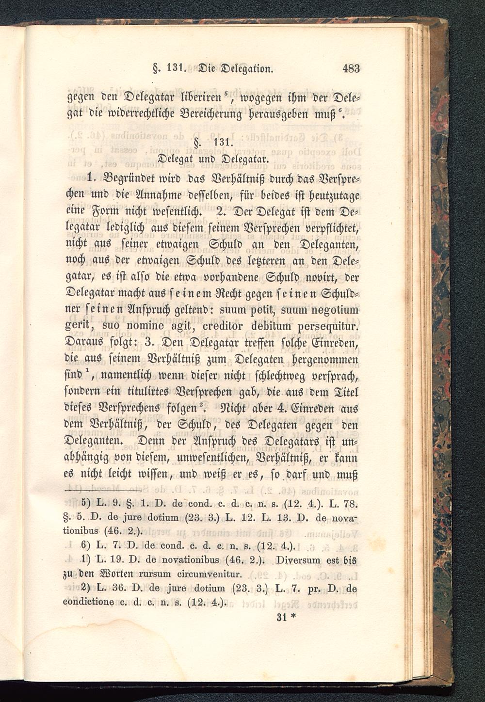 1. Begründet wird das Verhältniß durch das Verspre-chen und die Annahme desselben, für beides ist heutzutageeine Form nicht wesentlich. 2. Der Delegat ist dem De-legatar lediglich aus diesem seinem Versprechen verpflichtet,nicht aus seiner etwaigen Schuld an den Deleganten,noch aus der etwaigen Schuld des letzteren an den Dele-gatar, es ist also die etwa vorhandene Schuld novirt, derDelegatar macht ausseinem Recht gegen seinen Schuld-ner seinen Anspruch geltend: snum potit, suum noKotiumssoril, suo nomins oreäilvr äkbitum porseguitur.Daraus folgt: 3. Den Delegatar treffen solche Einreden,die aus seinem Verhältniß zum Delegaten hergenommensind^, namentlich wenn dieser nicht schlechtweg versprach,sondern ein titulirtes Versprechen gab, die aus dem Titeldieses Versprechens folgend Nicht aber 4. Einreden ausdem Verhältniß, der Schuld, des Delegaten gegen denDeleganten. Denn der Anspruch des Delegatars ist un-abhängig von diesem, unwesentlichen, Verhältniß, er kannes nicht leicht wissen, und weiß er es, so darf und muß