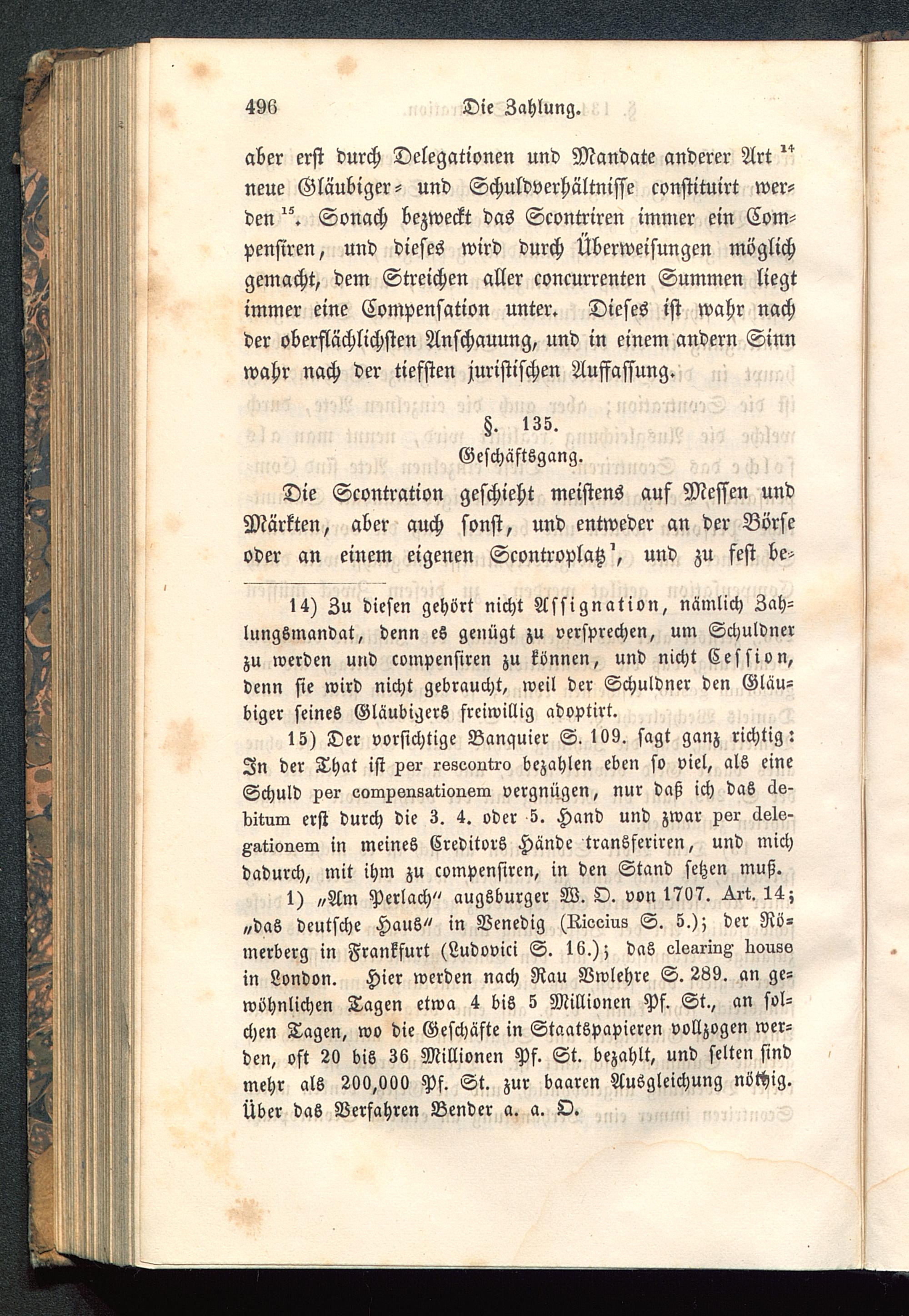 1) „Am Perlach" augsburger W. O. von 1707. ^,rt. 14;„das deutsche Haus" in Venedig (Rieeius S. 5.); der Rö-merberg in Frankfurt (Ludovici S. 16.); das oleariuK lloussin London . Hier werden nach Rau Vwlehre S. 289. an ge-wöhnlichen Tagen etwa 4 bis 5 Millionen Pf. St., an sol-chen Tagen, wo die Geschäfte in Staatspapieren vollzogen wer-den, oft 20 bis 36 Millionen Pf. St. bezahlt, und selten sindmehr als 200,060 Pf. St. zur baaren Ausgleichung nöthig.Über das Verfahren Bender a. a. O.