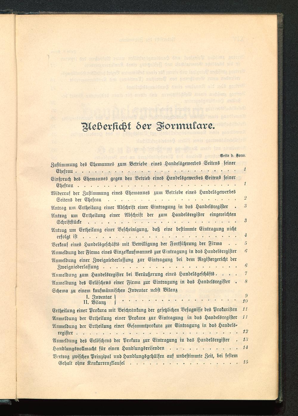 Uebersicht der Jormulare.