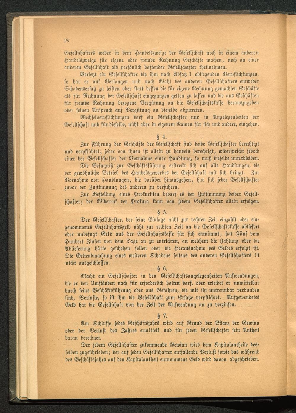 Am Schlüsse jedes Geschäftsjahrs wird auf Grund der Bilanz der Gewinnoder der Verlust des Jahres ermittelt und für jeden Gesellschafter sein Antheildaran berechnet.