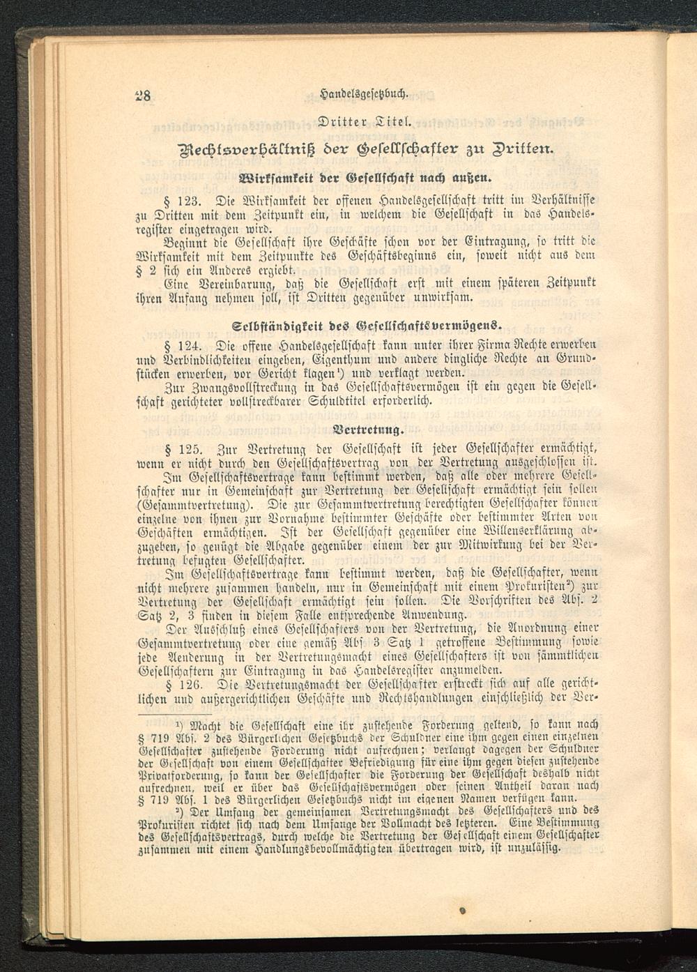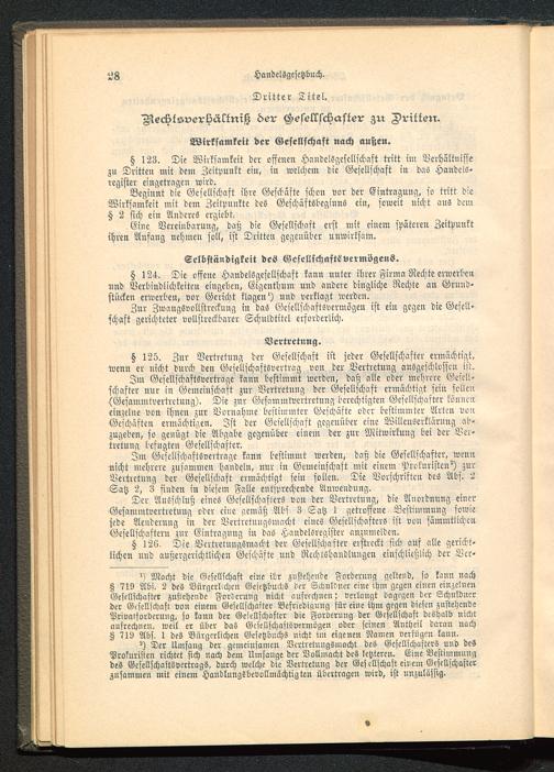 § 126. Die VertretungSmacbt der Gesellschafter erstreckt sich auf alle gericht-lichen und außergerichtlichen Geschäfte und Rechtshandlungen einschließlich der Ver-