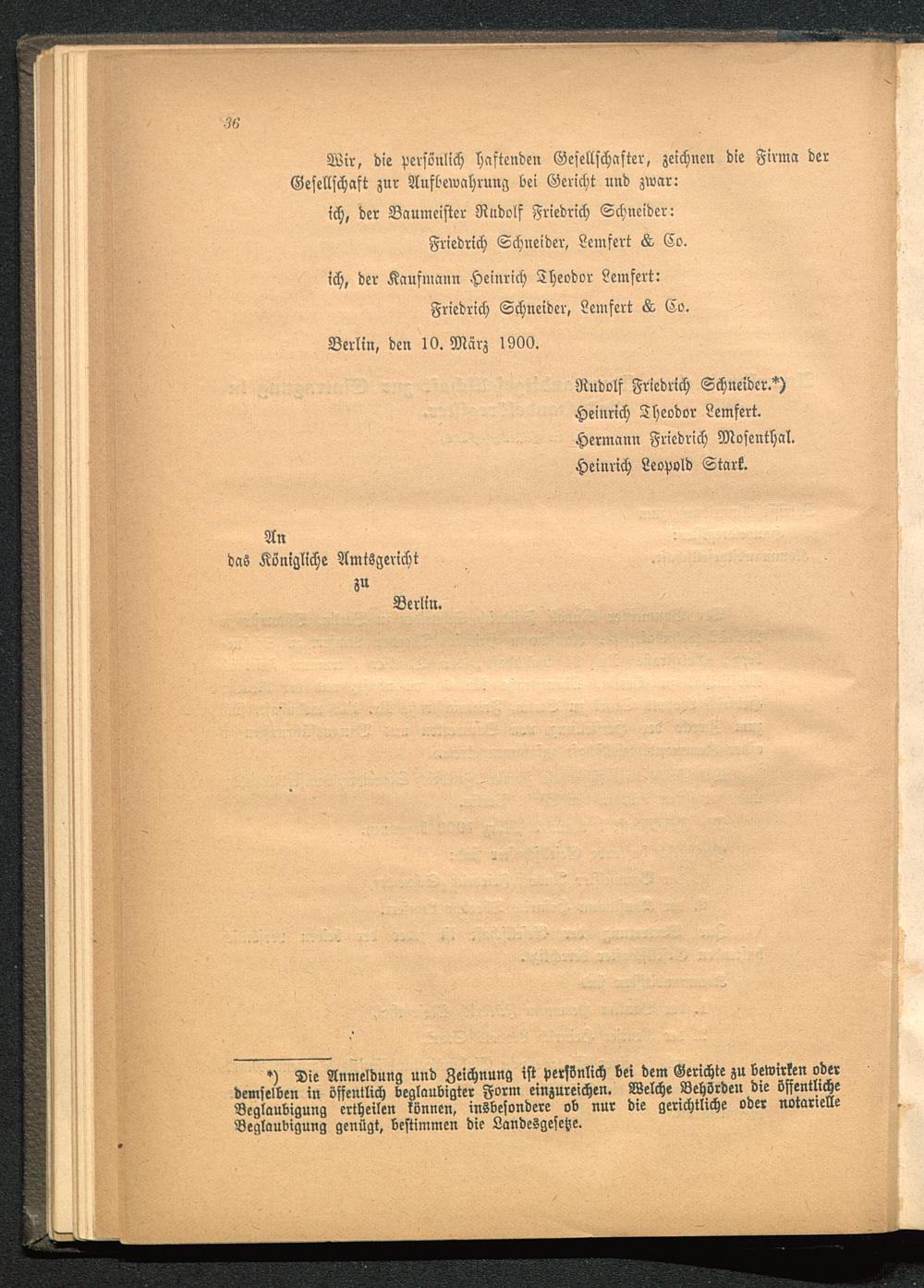*) Die Anmeldung und Zeichnung ist persönlich bei dem Gerichte zu bewirken oderdemselben in öffentlich beglaubigter Form einzureichen. Welche Behörden die öffentlicheBeglaubigung ertheilen können, insbesondere ob nur die gerichtliche oder notarielleBeglaubigung genügt, bestimmen die Landesgesetze.