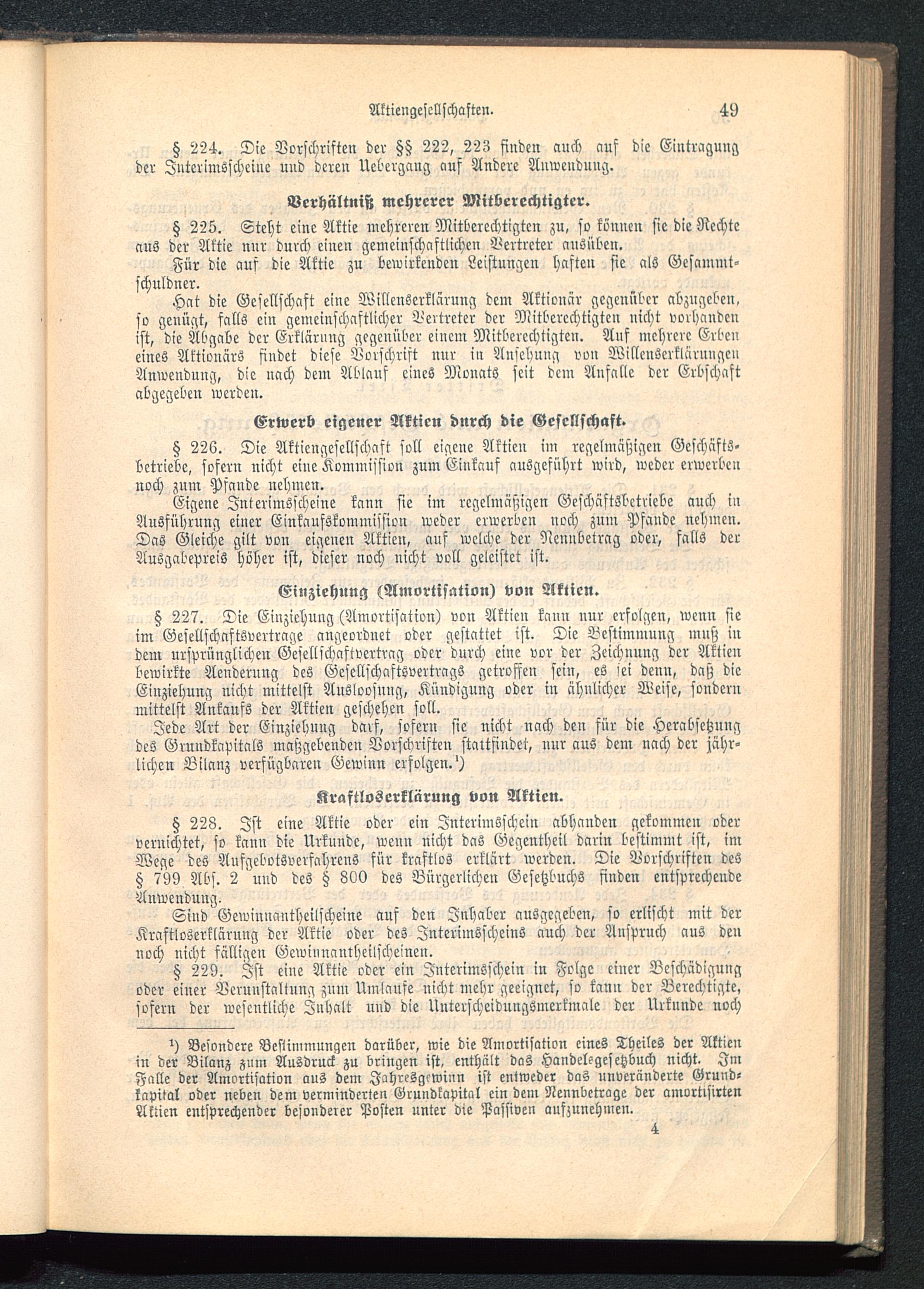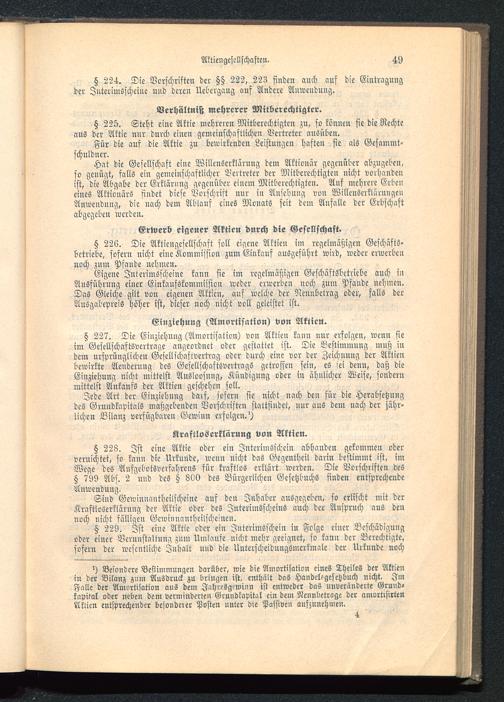 § 227. Die Einziehung (Amortisation) von Aktien kann nur erfolgen, wenn sieim Gesellschaftsvertrage angeordnet oder gestattet ist. Die Bestimmung muß indem ursprünglichen Gesellschaftvertrag oder durch eine vor der Zeichnung der Aktienbewirkte Aenderung des GcscllschaftsvertragS getroffen sein, es sei denn, daß dieEinziehung nicht mittelst Ansloosnng, Kündigung oder in ähnlicher Weise, sondernmittelst Ankaufs der Aktien geschehen soll.