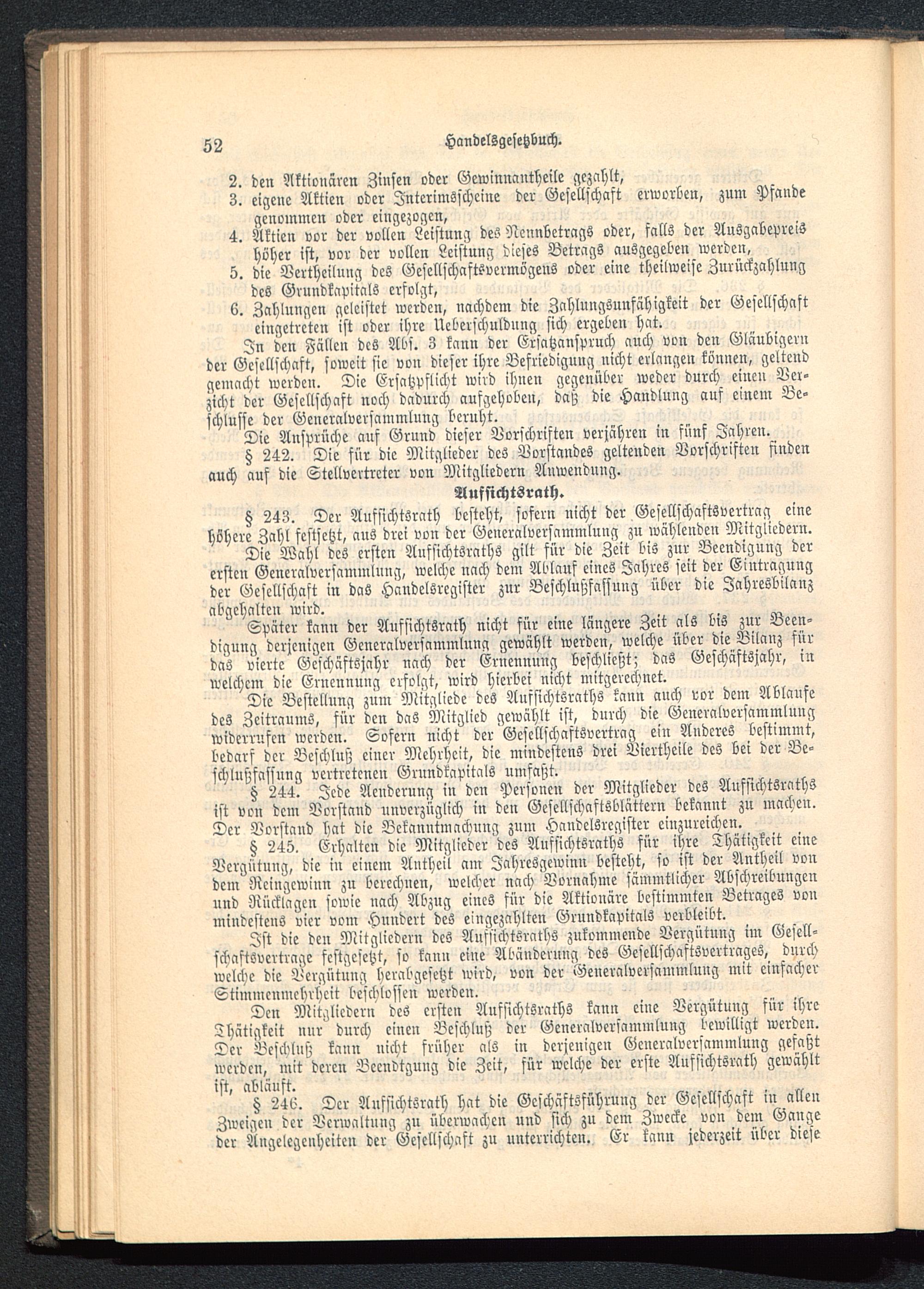 § 243. Der Aufsichtsrath besteht, sofern nicht der Gesellschaftsvertrag einehöhere Zahl festsetzt, aus drei von der Generalversammlung zn wählenden Mitgliedern.