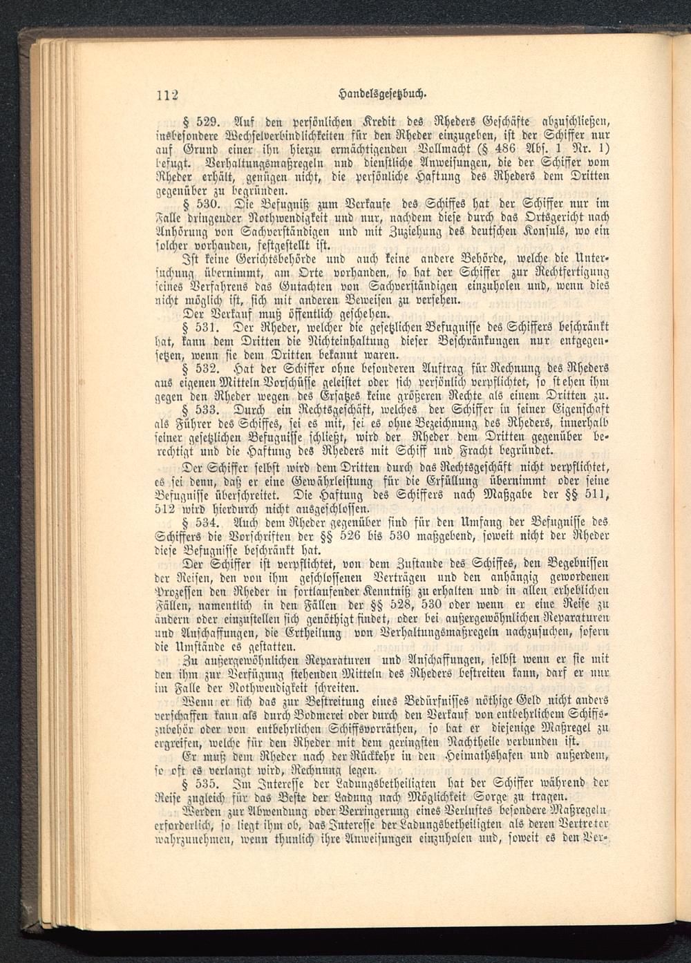 § 529. Auf den persönlichen Kredit des Rheders Geschäfte abzuschließen,insbesondere Wcchselverbindlichkeiten für den Rheder einzugeben, ist der Schiffer nurauf Grund einer ihn hierzu ermächtigenden Vollmacht (§ 486 Abs. I Nr. I)befugt. Verhaltungsmaßregeln und dienstliche Anweisungen, die der Schiffer vomNhcdcr erhält, genügen nicht, die persönliche Haftung des Rheders dem Drittengegenüber zu begründen.