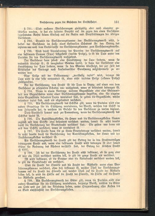 § 798. Ist bei der Versicherung der Fracht nicht bestimmt, ob sie ganz oderob nur ein Theil versichert werden soll, so gilt die ganze Fracht als versichert.