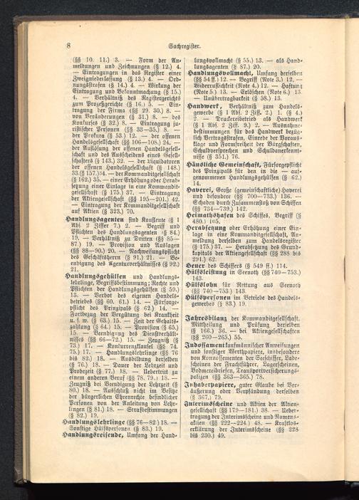 Handwerk, Verhältniß zum Handels-gewerbe (8 1 Abs. 2 Ziff. 2.) 1. (8 4.)2. — Druckereibetrieb als Handwerk(8 1 Abs. 2 Ziff. 9.) 2. — Ausnahme-bestimmungen für das Handwerk bezüg-lich Vertragsstrafen, Einrede der Voraus -klage und Formfreiheit der Bürgschaften,Schuldversprechen und Schuldanerkennt-nisse (8 351.) 76.