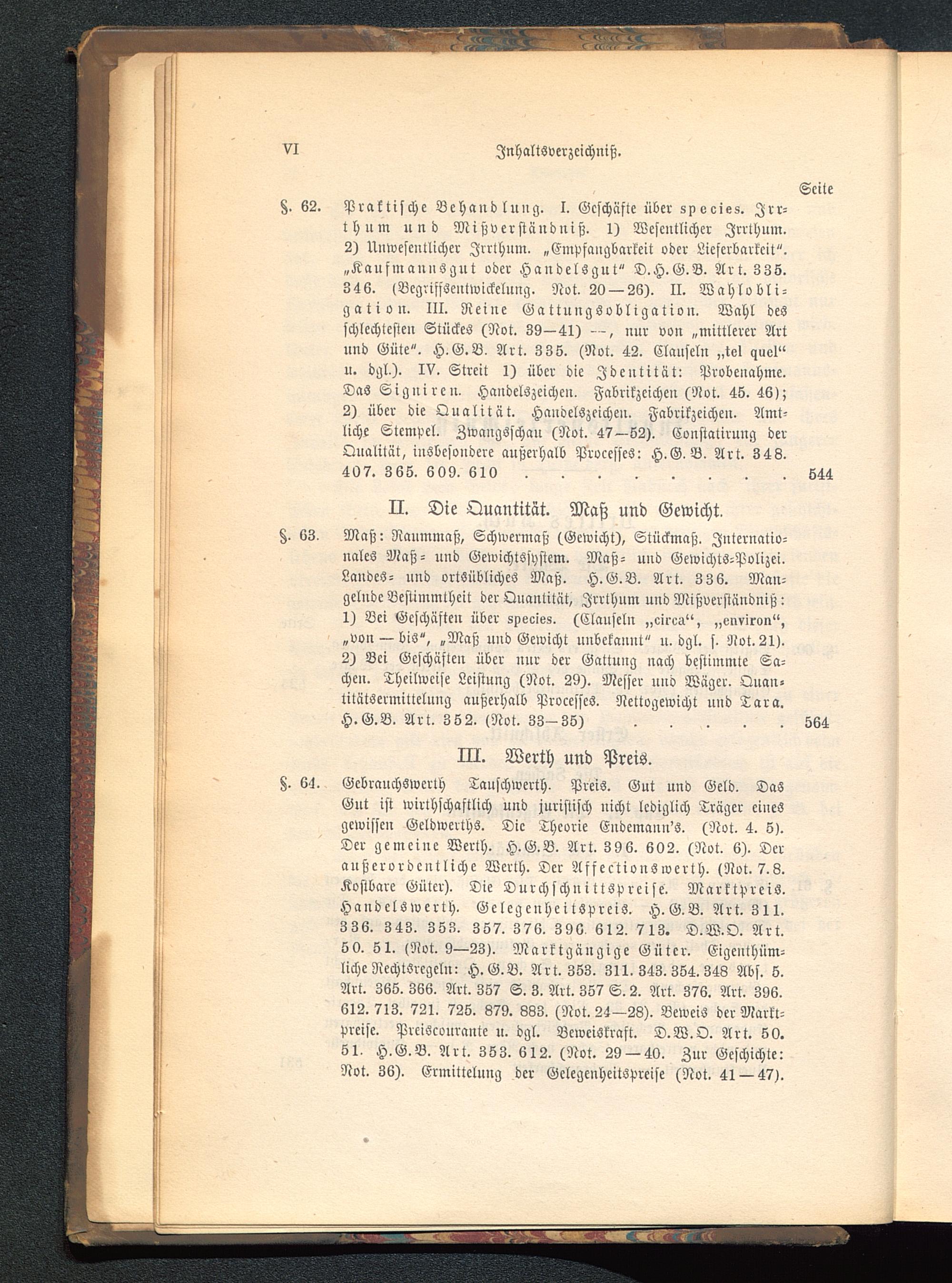 §. 63. Maß: Nanmmaß, Schwermaß (Gewicht), Stückmaß. Internatio-nales Maß- und Gewichtssystcm. Maß- und Gewichts-Polizei.Landes- und ortsübliches Maß. H.G.V. Art. 3 3 6. Man-gelnde Bestimmtheit der Quantität, Irrthum und Mißverständniß: