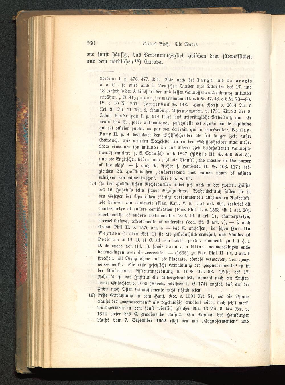 vorkam i I. p. 476, 477. 631 Wie noch bei Isrxs und ksssrexisa, a, O, so wird auch in Deutscheu Quellen und Schriften des 17. und18. Jahrh.'s der Schifssschreiber und dessen Connossementszeichnung mituntererwähnt, z-B Stvpms» i>,j,is msrilimum III. c.5llr.47.48. c, 6 Ar, 7g—80.IV. c, 10 N,-. 201. Langcnbeck S. 143. Hans. Receß v. 1614 Tit. 6,Art. 3. Tit. 11 Art. 4, Hamburg. Assecurauzordn, v. 1731 Tit. -22 Art. 3.Schon L msrixo» I. p. 314 kehrt das ursprüngliche Verhältniß um. Ernennt das E. „piecv sutlivntique, puisou'elle est 8iAi,se psr le cspitsinequi est otkicier public, ou psr 80» eciivsin izui le repiesente". Loulsv-kstv II. p. 4 bezeichnet den Schiffsschreiber als seit langer Zeit außerGebrauch. Die neuesten Scegesetze nennen den Schifssschreiber nicht mehr.Doch erwähnen ihn mitunter die aus älterer Zeit beibehaltenen Connossc-mentsformnlare, z. B. Spanische noch 1827 (Pöhls III, S. 450 Not. 6),und die Englischen haben noch jetzt die Clansel „tko msster or tke purserok Nie sl.ip" — s. auch N. Archiv f. Handelsr. II. S. 103. 117; des-gleichen die Holländischen „onckerteekenä met mijnen nssin ok mijnensclirijver vsn mijnentnexe". Xist p. 8. 54.