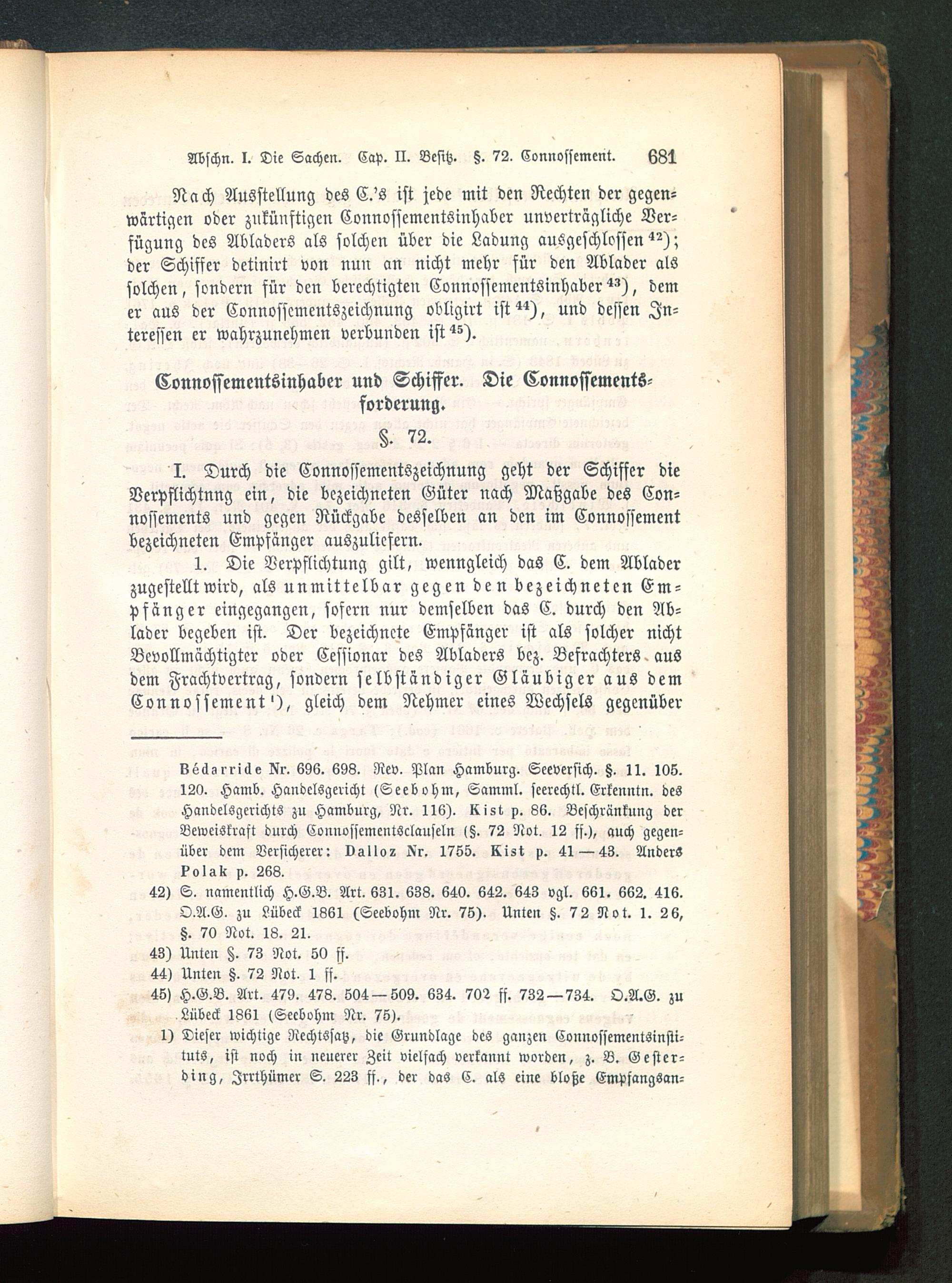 42) S. namentlich H.G.B. Art. 631. 638. 640. 642. 643 vgl. 661. 662. 416.O.A.G. zu Lübeck 1861 (Seebohm Nr. 76). Unten §. 72 Not. I. 26,§. 70 Not. 16. 21.
