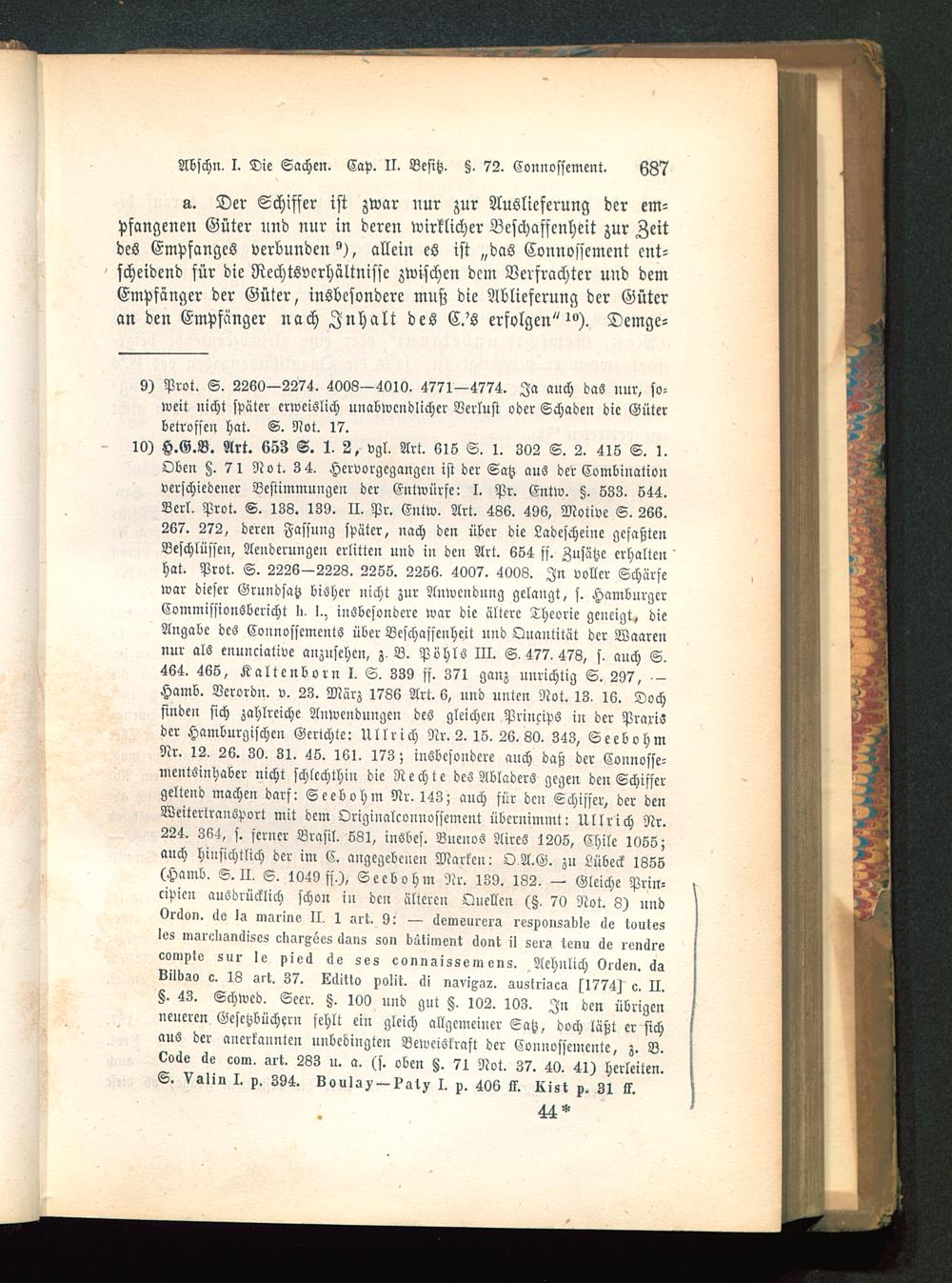 9) Prot. S. 2260—2274. 4003—4010. 4771—4774. Ja auch das nur, so-weit nicht später erweislich uuabwcndlichcr Verlust oder Schaden die Guterbetroffen hat. S. Not. 17.10) H.G.B. Art. K5Z S. 1. 2, vgl. Art. 615 S. 1. 302 S. 2. 41S S. 1.