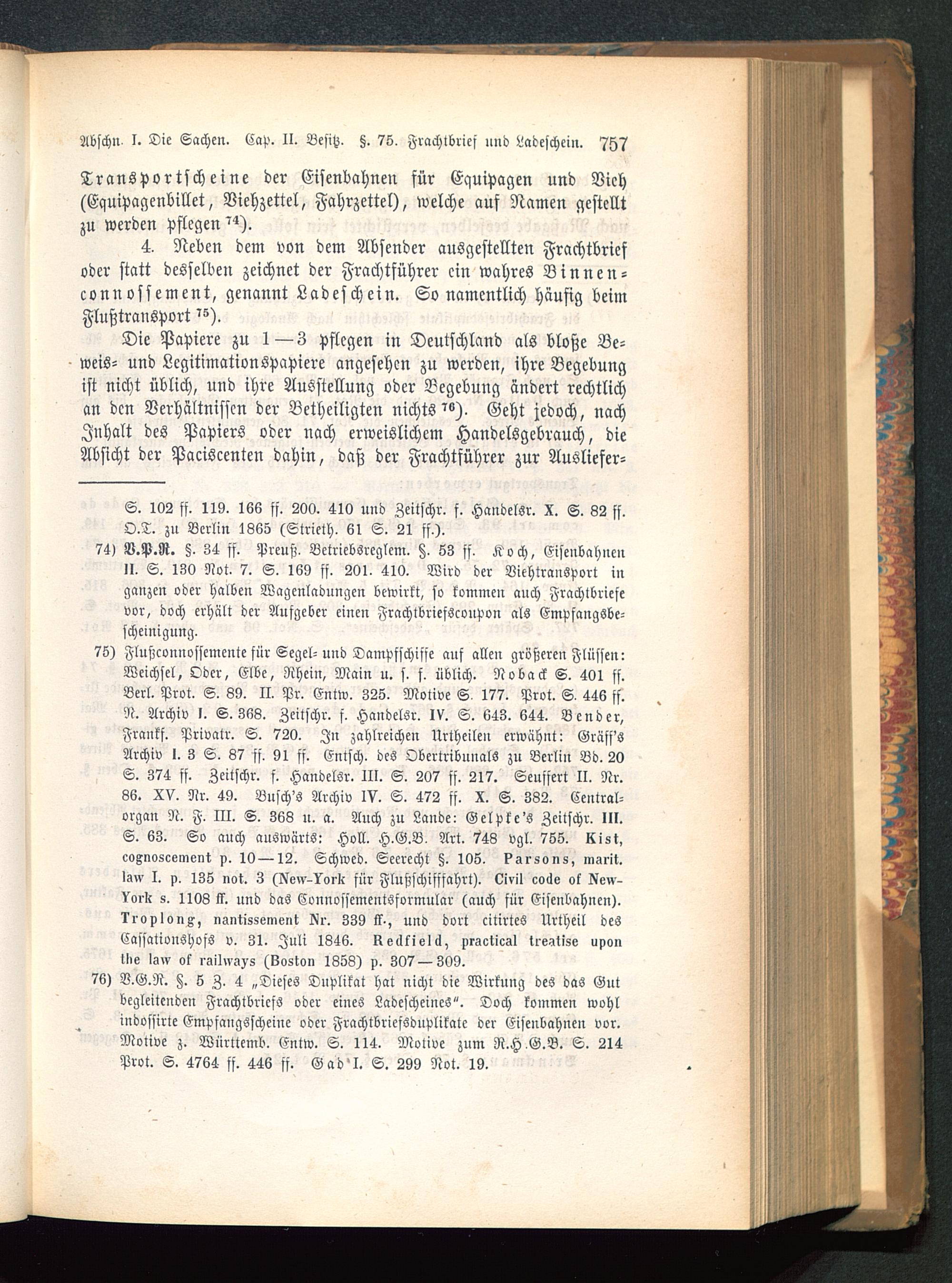 Abschn I. Die Sachen. Cap. II. Besitz. §. 75, Frachtbrief und Ladeschein. 757