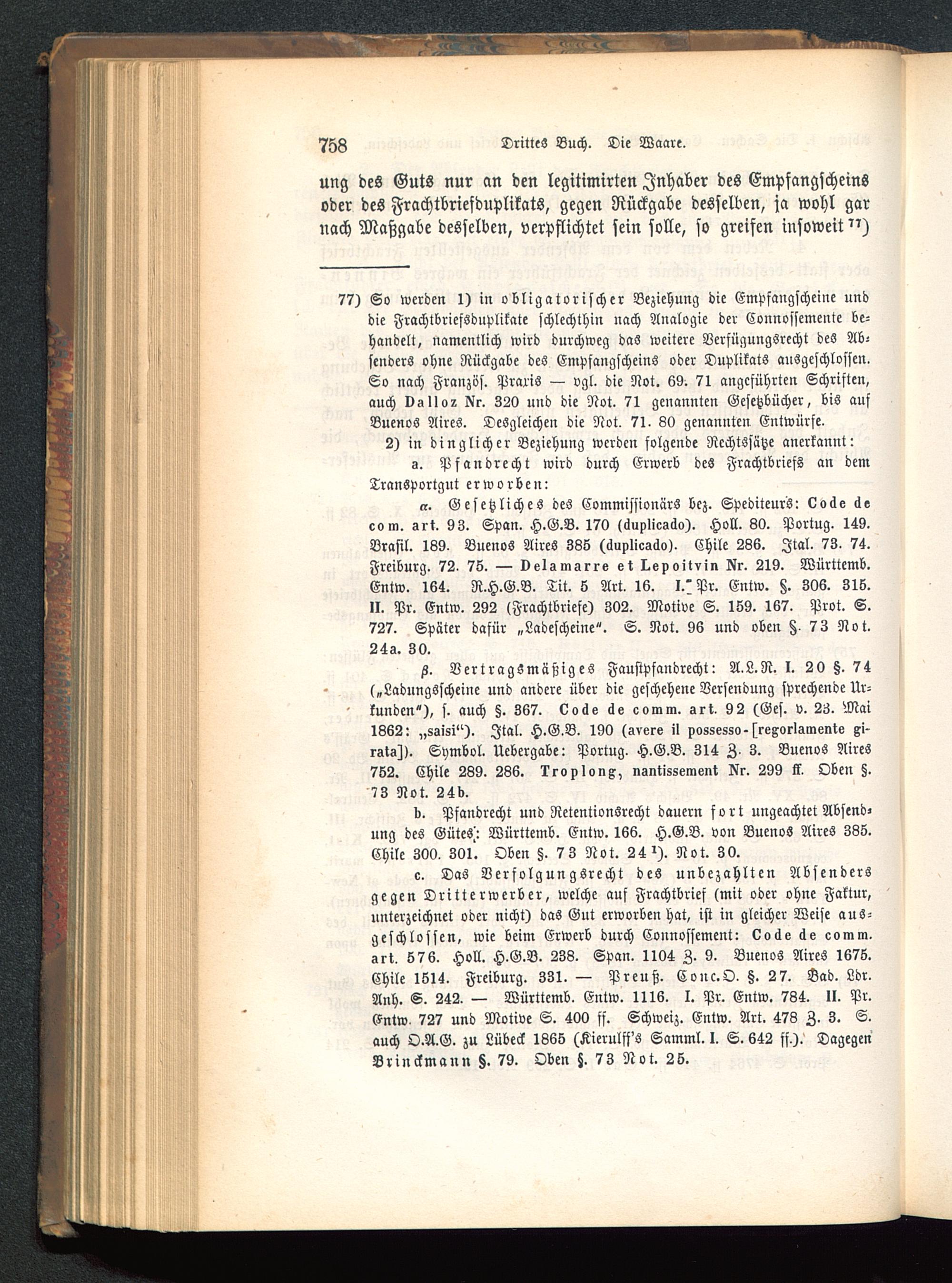 d. Pfandrecht und RetentionSrecht dauern fort ungeachtet Abfind-ung des Gütes': Württemb. Entw. 166. H.G.B, von Buenos Aires 335.Chile 300. 301. Oben §. 73 Not. 24»). Not. 30.