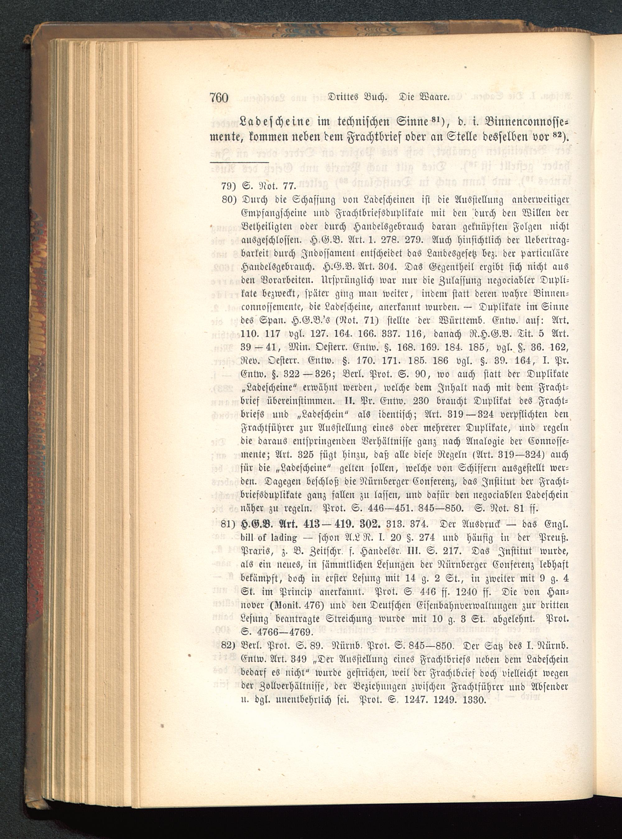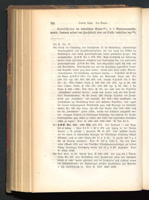 81) H.G.B. Art. 413—419. 302. 313. 374. Der Ausdruck — das Engl.b!I> ok IsSinx — schon A.L R. I. 20 §. 274 und häufig iu der Preuß.Praris, z. B. Zeitschr, f. Handelsr, III. S. 217. Das Institut wurde,als ein neues, in sämmtlichen Lesungen der Nürnberger Couferenz lebhaftbekämpft, doch in erster Lesung mit 14 g. 2 St., in zweiter mit 9 g. 4St. im Princip anerkannt. Prot. S 4-16 ff. 1240 ff. Die von Han-nover (Alonit. 476) und den Deutschen Eisenbahnverwaltuugeu zur drittenLesung beantragte Streichung wurde mit 10 g. 3 St. abgelehnt. Prot.S. 4766—4769.
