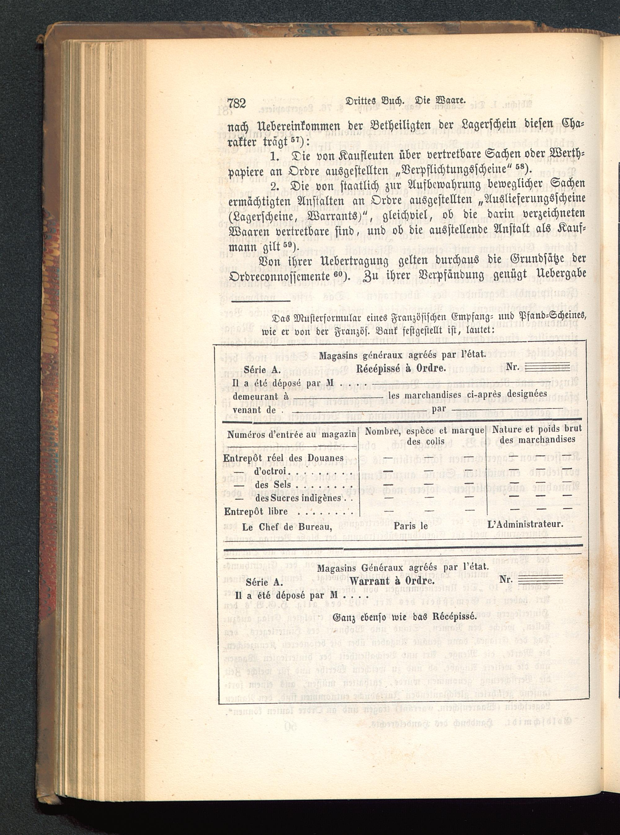 Das Musterformular eines Franzosischen Empfang- und Pfand-Scheines,wie er von der Französ, Bank festgestellt ist, lautet: