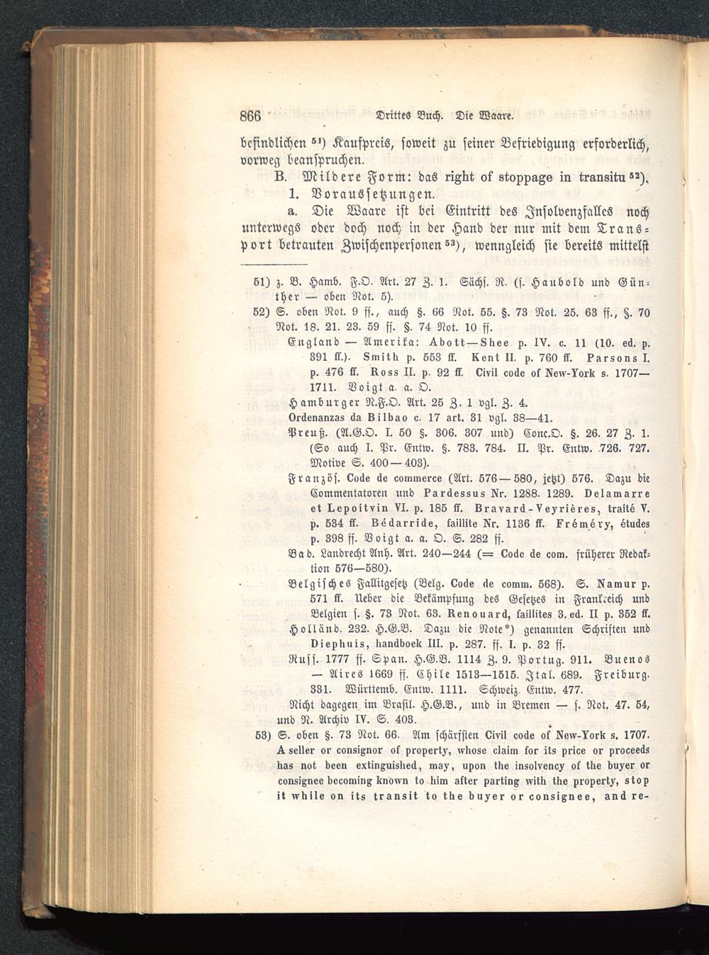 53) S. oben §. 73 Not. 66. Am schärfsten civil cocke ok «en-rork 5. 1707.^ seller or consixnor ok propertv, nlwse clsim kor its price or proceecksI»ss not been extmxuisl>eck, msv, upon tlie insolvevov ok tlie buver orconsixnee becominx knonn to lum slter psrtinx mtli tlie provert^, stopit ^kile oo its trsnsit to tke bu^er or consixnee, sock re-