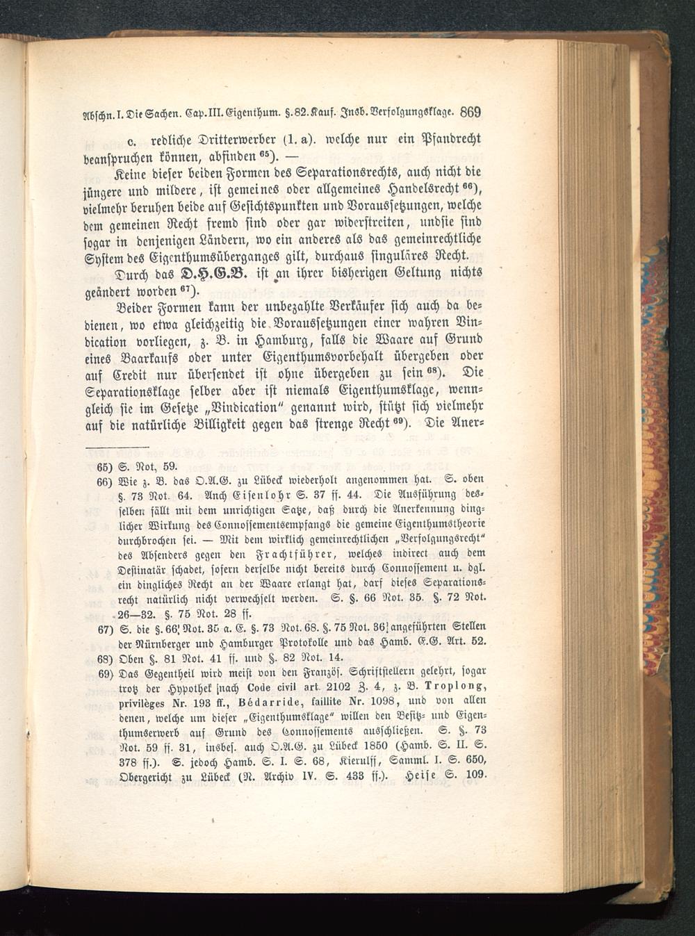 Keine dieser beiden Formen des Separationsrechts, auch nicht diejüngere und mildere, ist gemeines oder allgemeines Handelsrecht^),vielmehr beruhen beide auf Gesichtspunkten und Voraussetzungen, welchedem gemeinen Recht fremd sind oder gar widerstreiten, undsie sindsogar in denjenigen Ländern, wo ein anderes als das gemeinrechtlicheSystem des Eigenthumsüberganges gilt, durchaus singuläres Recht.