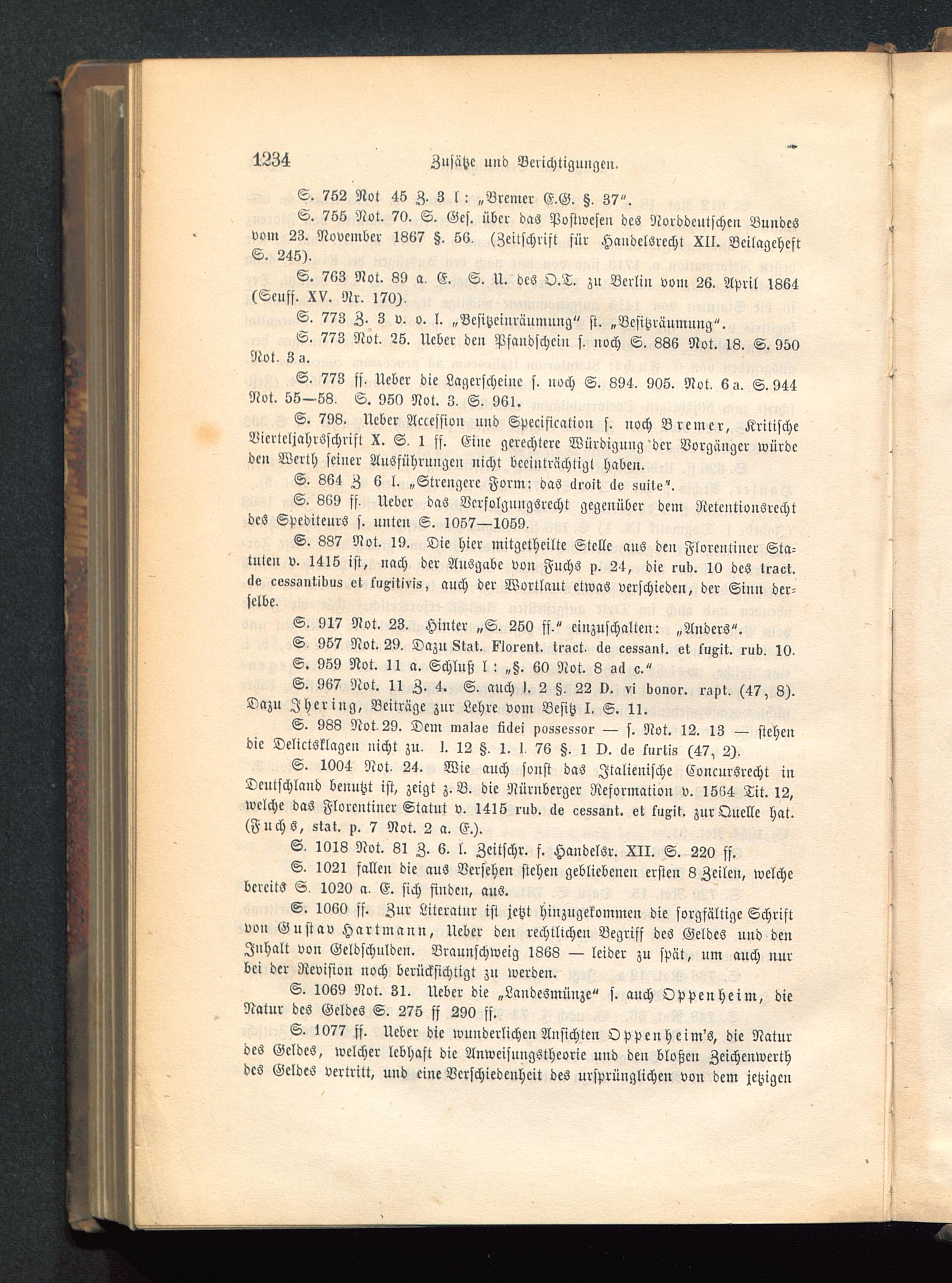 S. 1060 sf. Zur Literatur ist jetzt hinzugekommen die sorgfältige Schriftvon Gustav Hartmann, Ueber den rechtlichen Begriff des Geldes uud deu Inhalt von Geldschulden. Vrauuschweig 1368 — leider zu spät, um auch uurbei der Revision noch berücksichtigt zu werden.