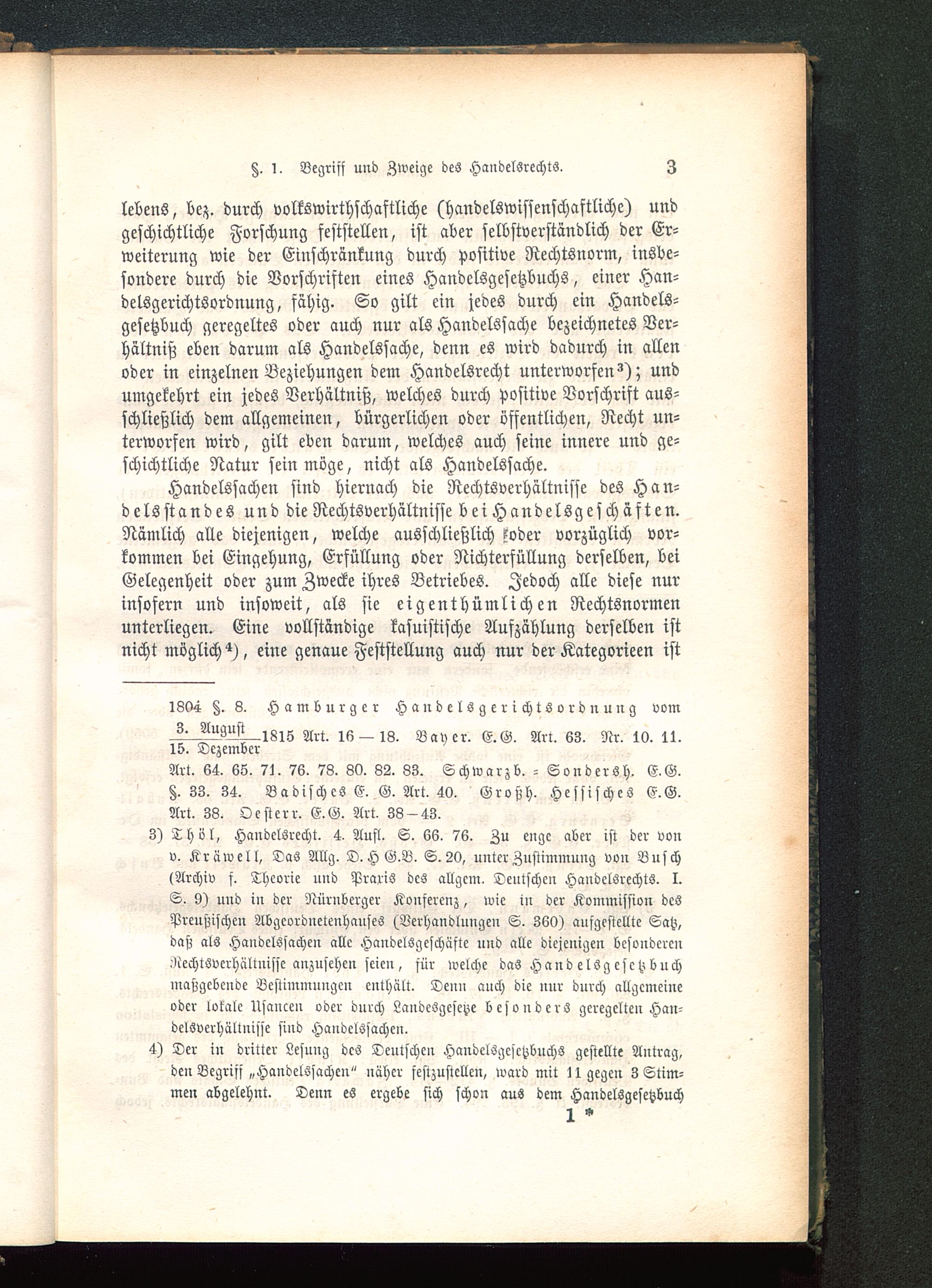 lebens, bez. durch volkswirthschaftliche (handelswissenschaftliche) undgeschichtliche Forschung feststellen, ist aber selbstverständlich der Er-weiterung wie der Einschränkung durch positive Rechtsnorm, insbe-sondere durch die Vorschriften eines Handelsgesetzbuchs, einer Han-delsgerichtsordnung, fähig. So gilt ein jedes durch ein Handels-gesetzbuch geregeltes oder auch nur als Handelssache bezeichnetes Ver-hältniß eben darum als Handelssache, denn es wird dadurch in allenoder in einzelnen Beziehungen dem Handelsrecht unterworfen undumgekehrt ein jedes Verhältniß, welches durch positive Vorschrift aus-schließlich dem allgemeinen, bürgerlichen oder öffentlichen, Recht un-terworfen wird, gilt eben darum, welches auch seine innere und ge-schichtliche Natur sein möge, nicht als Handelssache.
