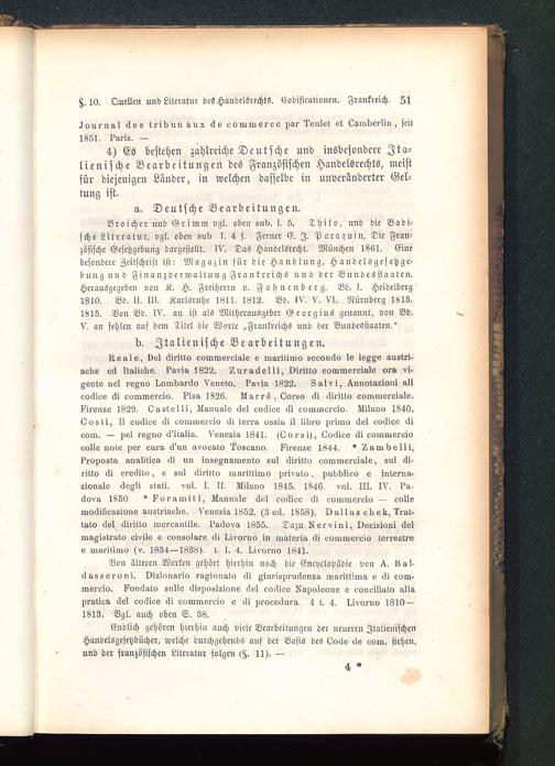 4) ES bestehen zahlreiche Deutsche und insbesondere Ita-lienische Bearbeitungen des Französischen Handelsrechts, meistfür diejenigen Länder, in welchen dasselbe in unveränderter Gel-tung ist.