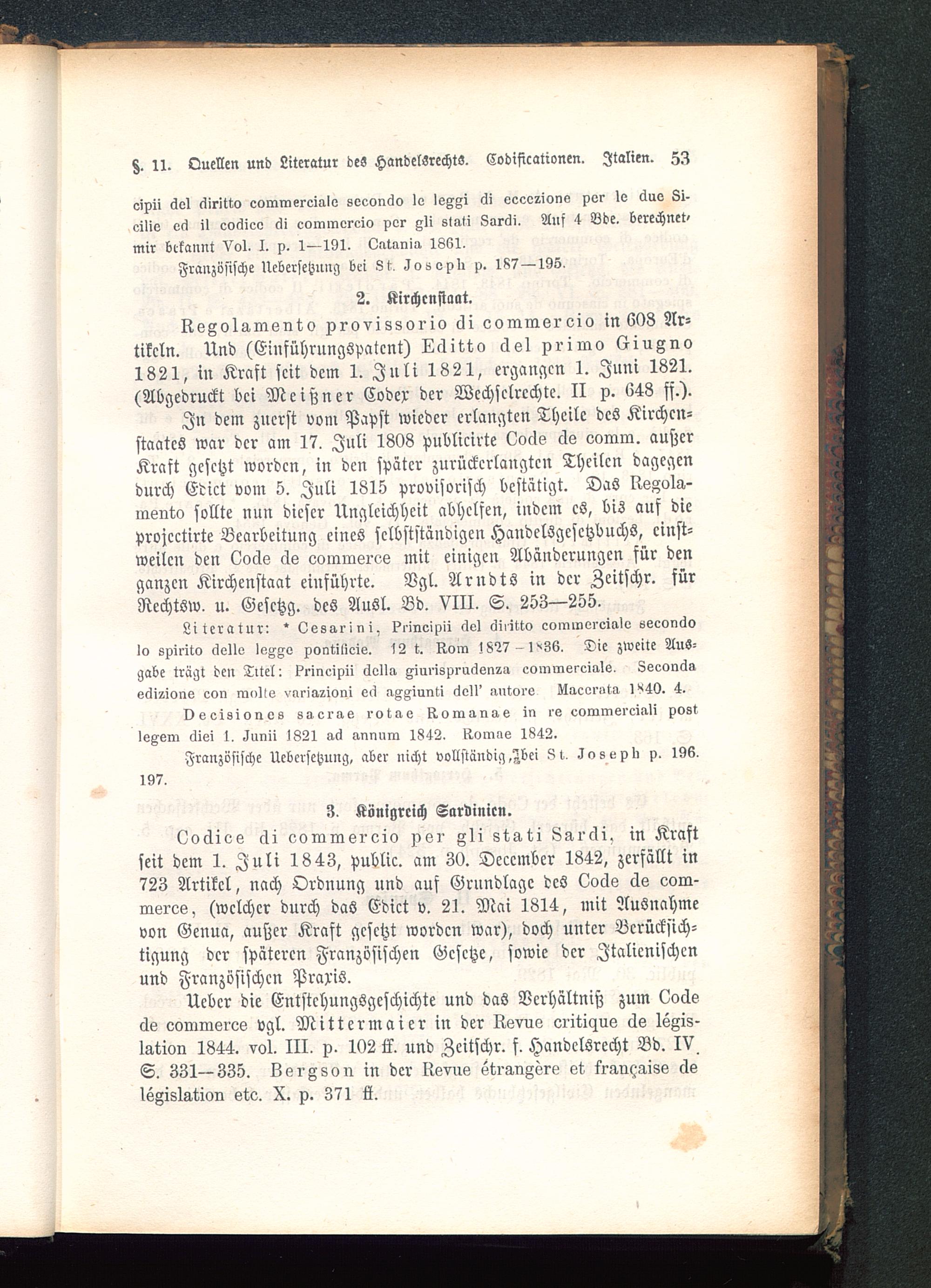 8. 11. Quellen und Literatur des Handelsrechts. Codificationen. Italien . ZI