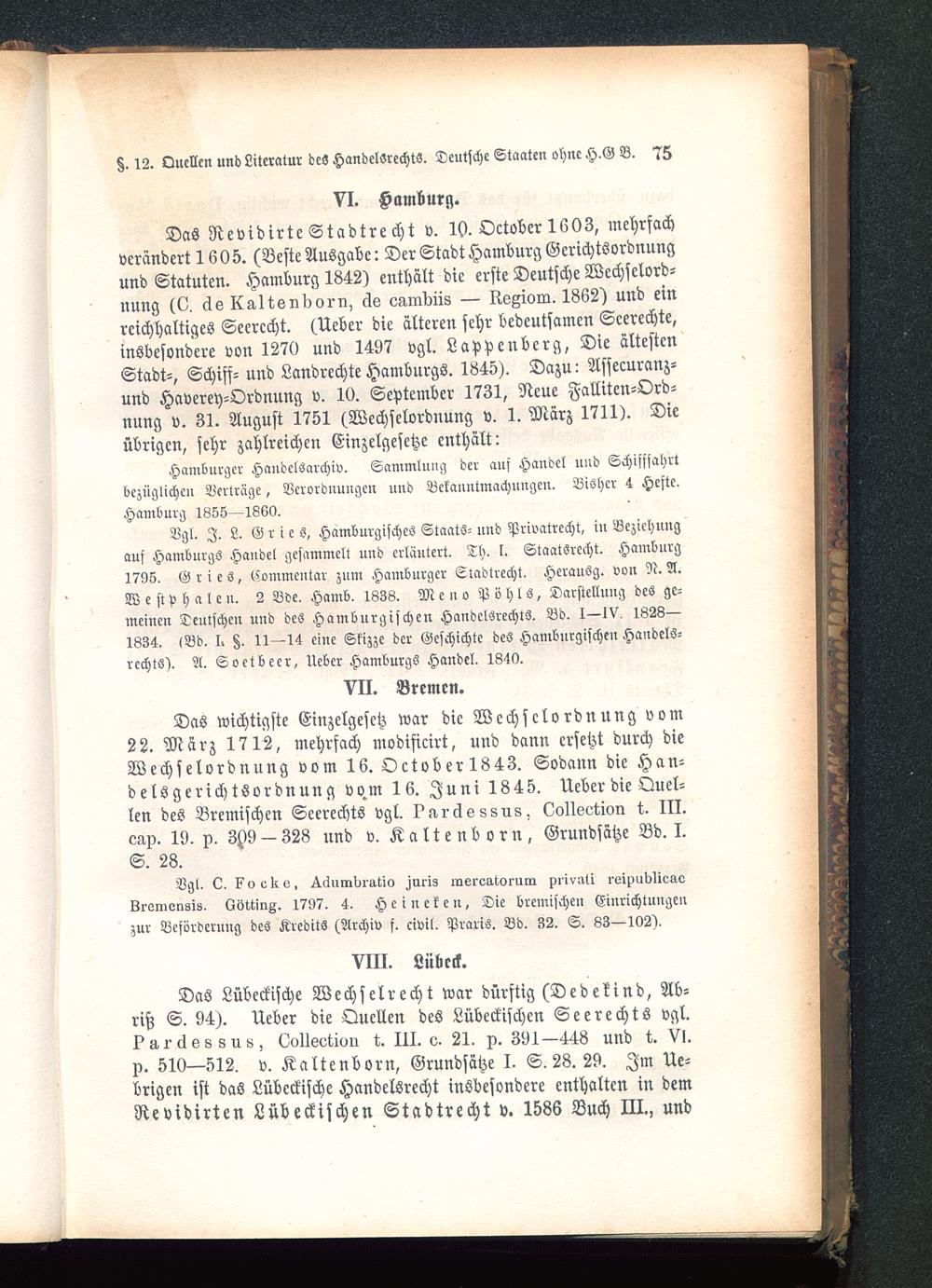 Vgl. I. L. Grie s, Hamburgisches Staats- und Privatrecht, in Beziehungaus Hamburgs Handel gesammelt und erläntert. Th. l. Staatsrecht. Hambnrg1795. Gries, Kommentar zum Hamburger Siadtrecht. Hcrausg. von N. A.Westphalen. 2 Bde. Hamb , 1633. Meno Pbhls, Darstellung des ge-meinen Deutschen und des Hambnrgischen Handelsrechts. Bd. I—IV, 1823—1834. <Bd. I. §. 11—14 eine Skizze der Geschichte des Hambnrgischen Handels-rechts). A. Soetbeer , Ueber Hamburgs Handel. 18-iO.