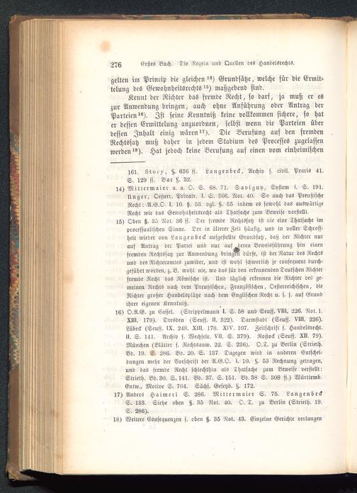 16) O.A.G. zu Cassel. (Strippelmann'I. S. 68 und Seuff. VI». 226. Not. 1.XIII. 179). Dresden (Seuff. II. 322). Darmstadt (Seufs. VIII. 226).Lübeck (Seuff. IX. 248. XIII. 178, XlV. 107. Zeitschrift f. Handelsrecht.II. S. 141. Archiv f. Wechsele. V». S. 379). Rostock «Senfs, XII. 79).München (Blätter f. Rcchtsauw. 22. S. 236). O.T. zu Berlin (Strielh.Bd. 19. S. 286. Bd. 20. S. 137, Dagegen wird in anderen Entschei-dungen mehr der Vvrschrift der A.G.O. I. 10. tz, 63 Rechnung getragen,und das fremde Recht schlechthin als Thatsache zum Beweise verstellt:Strieth. Bd. 30. S. 141. Bd. 37. S. 161. Bd. 38 S. 303 ff.) Württemb.Entw., Motive S. 764. Sächs. Gesetzb. §. 172.