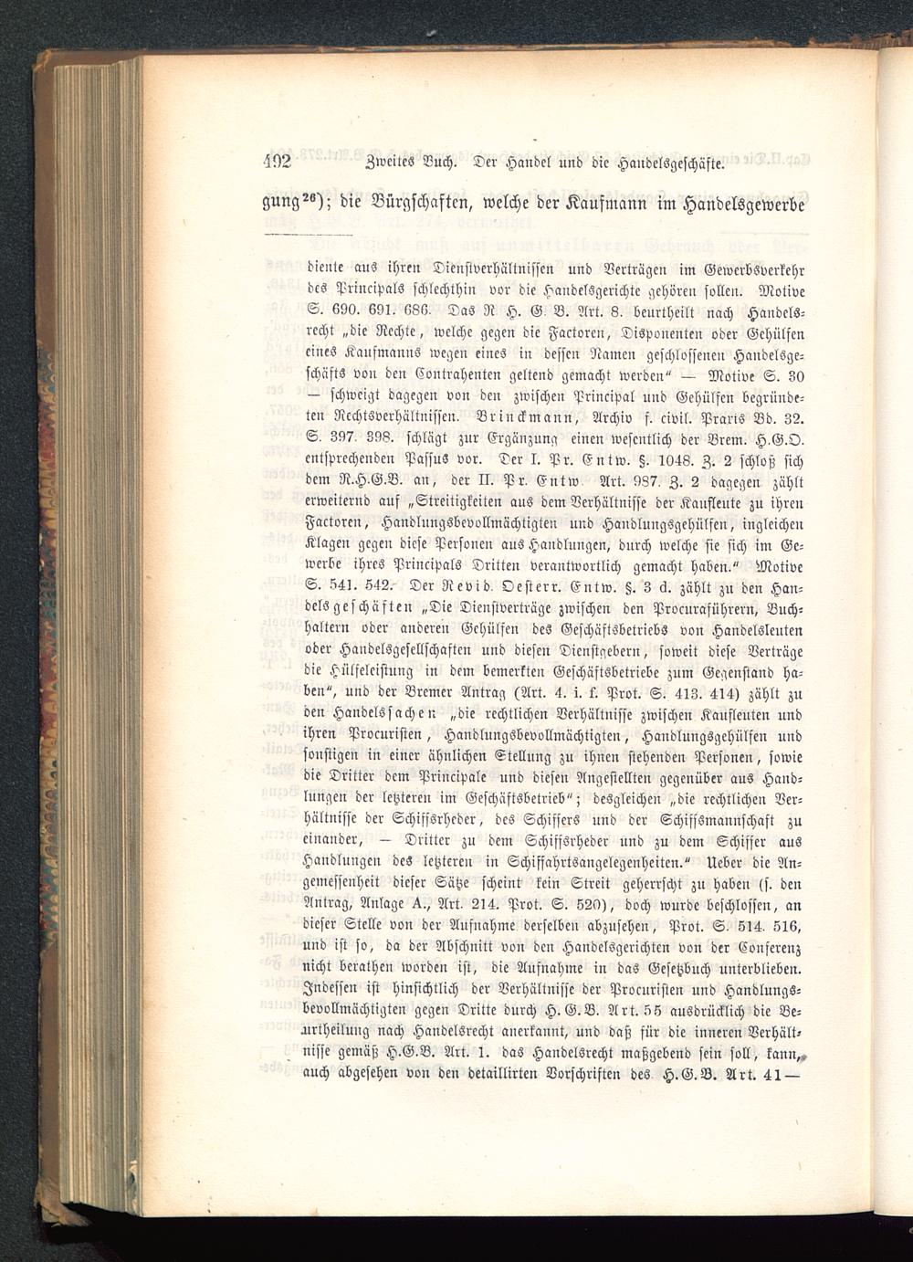 diente aus ihren Dienstverhältnissen und Verträgen im GewerbSvcrkehrdes Principals schlechthin vor die Handelsgerichte gehören sollen. MotiveS. 690. K9I. 68», Das N H. G B. Art. S, beurtheilt nach Handels-recht „die Rechte, welche gegen die Factoren, Disponenten oder Gehülfeneines Kaufmanns wegen eines in dessen Namen geschlossenen Handelsge-schäfts von. den Kontrahenten geltend gemacht werden" — Motive S. 30— schweigt dagegen von den zwischen Principal und Gehülfen begründe-ten Rechtsverhältnissen. Brinckmann, Archiv f. civil. Praris Bd. 32.S. 397. 398. schlägt znr Ergänzung einen wesentlich der Brem. H.G.O.entsprechenden Passus vor. Der I. Pr. Entw. §. 1048. Z. 2 schloß sichdem R.H.G.B. an, der II. Pr. Entw Art. 9S7. Z. 2 dagegen zählterweiternd auf „Streitigkeiten aus dem Verhältnisse der Kaufleute zu ihreuFactoren, Handlungsbevollmächtigten und Handlungsgehülfen, ingleichenKlagen gegen diese Personen aus Handlungen, dnrch welche sie sich im Ge-werbe ihres Principals Dritten verantwortlich gemacht haben." MotiveS. 541. K42. Der Nevid. Oesterr. Entw. §. 3 6. zählt zu den Han-delsgeschäften „Die Dicnslverträge zwischen den Procuraführern, Buch-haltern oder anderen Gehülfen des Geschäftsbetriebs von Handelsleutenoder Handelsgesellschaften und diesen Dicnstgebern, soweit diese Verträgedie Hülfelcistung in dem bemerkten Geschäftsbetriebe zum Gegenstand ha-ben", und der Bremer Antrag (Art. 4. i. k. Prot. S. 413. 414) zählt zuden Handelssachen „die rechtlichen Verhältnisse zwischen Kaufleuten undihren Prokuristen, Handlungsbevollmächtigten, Handlungsgehülfen undsonstigen in einer ähnlichen Stellung zu ihnen stehenden Personen, sowiedie Dritter dem Principale und diesen Angestellten gegenüber aus Hand-lungen der letzteren im Geschäftsbetrieb"; desgleichen „die rechtlichen Ver-hältnisse der Schisssrheder, des Schiffers und der Schiffsmannschaft zueinander, — Dritter zu dem Schiffsrheder und zu dem Schiffer ausHandlnngen des letztereu in Schifsahrtsangelegenheiten." Ueber die An-gemessenhcit dieser Sätze scheint kein Streit geherrscht zu haben ls. denAntrag, Anlage ä., Art. 214. Prot. S. 520), doch wurde beschlossen, andieser Stelle von der Aufnahme derselben abzusehen, Prot. S. 614. 516,und ist so, da der Abschnitt von den Handelsgerichten von der Conferenznicht berathen worden ist, die Aufnahme in das Gesetzbuch unterblieben.Indessen ist hinsichtlich der Verhältnisse der Procnristen und Handlungs-bevollmächtigten gegen Dritte durch H.G.B. Art. 55 ausdrücklich die Be-urtheilung nach Handelsrecht anerkannt, und daß für die inneren Verhält-nisse gemäß H.G.B. Art. I. das Handelsrecht maßgebend sein soll, kann,»auch abgesehen von den detaillirten Vorschriften des H.G.B. Art. 41 —