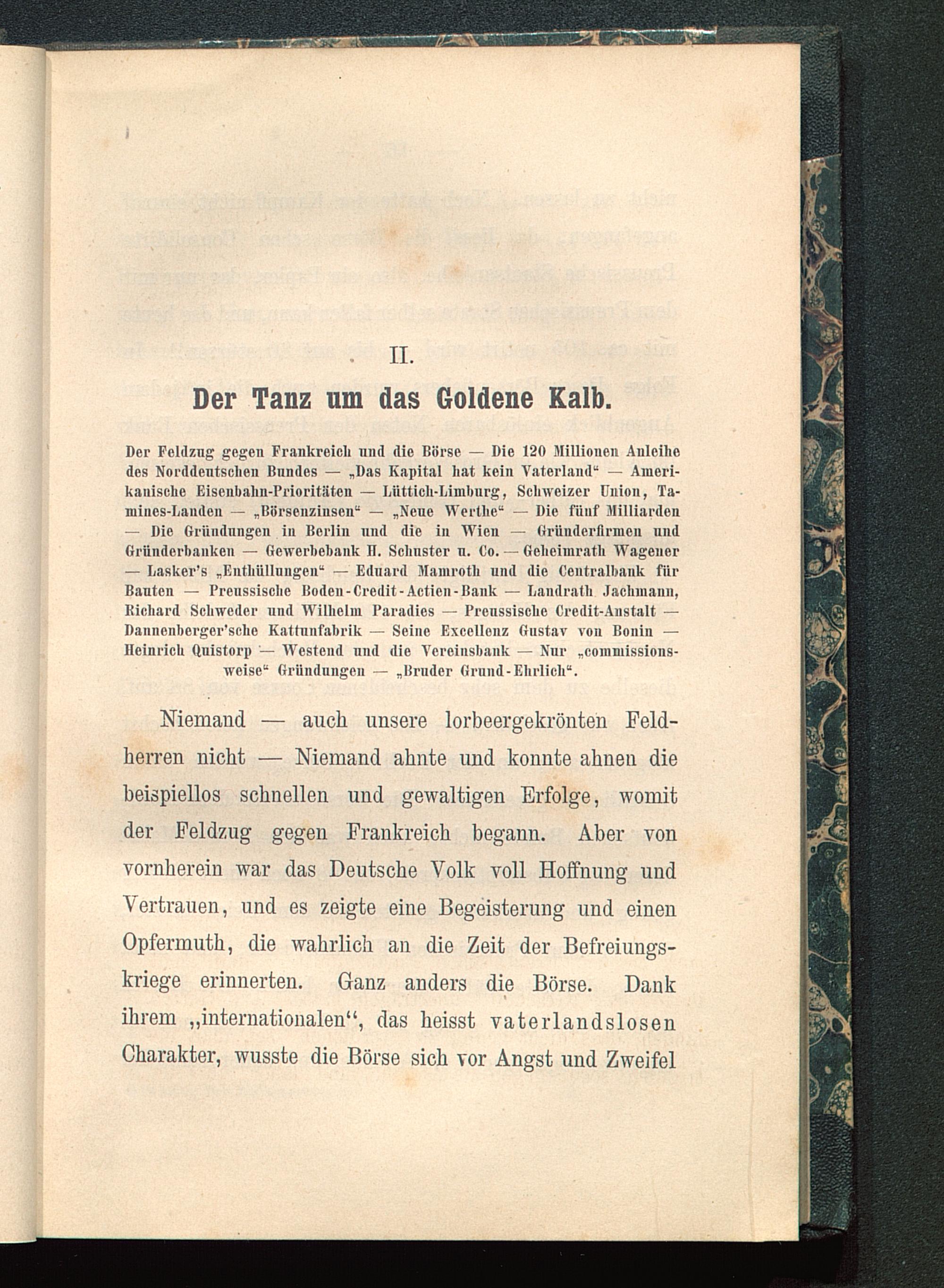 Der Feldzug gegen Frankreich und die Börse — Die 120 Millionen Anleihedes Norddeutschen Bundes — „Das Kapital hat kein Vaterland“ — Ameri-kanische Eisenbahn-Prioritäten — Lüttich-Limburg, Schweizer Union, Ta-mines-Lauden — „Börsenzinsen“ — „Neue Wertlie“ — Die füuf Milliarden