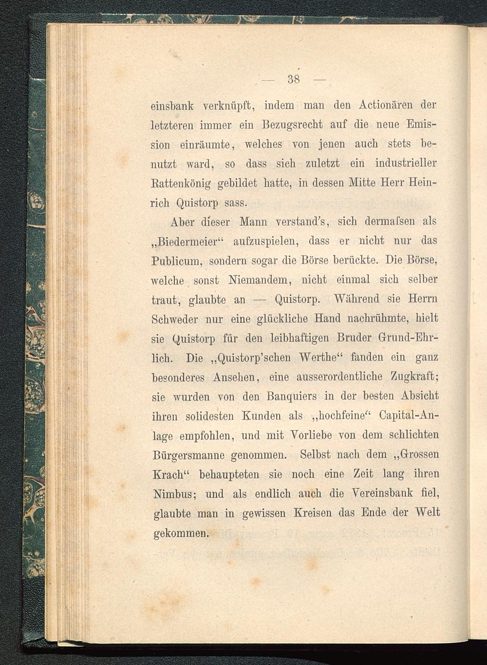 einsbank verknüpft, indem man den Actionären derletzteren immer ein Bezugsrecht auf die neue Emis-sion einräumte, welches von jenen auch stets be-nutzt ward, so dass sich zuletzt ein industriellerBattenkönig gebildet hatte, in dessen Mitte Herr Hein-rich Quistorp sass.