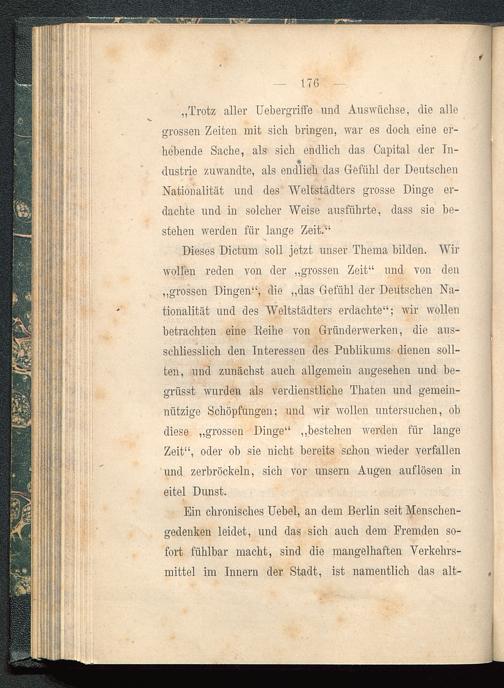 Dieses Dictum soll jetzt unser Thema bilden. Wirwollen reden von der „grossen Zeit“ und von den„grossen Dingen“, die „das Gefühl der Deutschen Na-tionalität und des Weltstädters erdachte“; wir wollenbetrachten eine Reihe von Gründerwerken, die aus-schliesslich den Interessen des Publikums dienen soll-ten, und zunächst auch allgemein angesehen und be-griisst wurden als verdienstliche Thaten und gemein-nützige Schöpfungen; und wir wollen untersuchen, obdiese „grossen Dinge“ „bestehen werden für langeZeit“, oder ob sie nicht bereits schon wieder verfallenund zerbröckeln, sich vor unsern Augen auflösen ineitel Dunst.