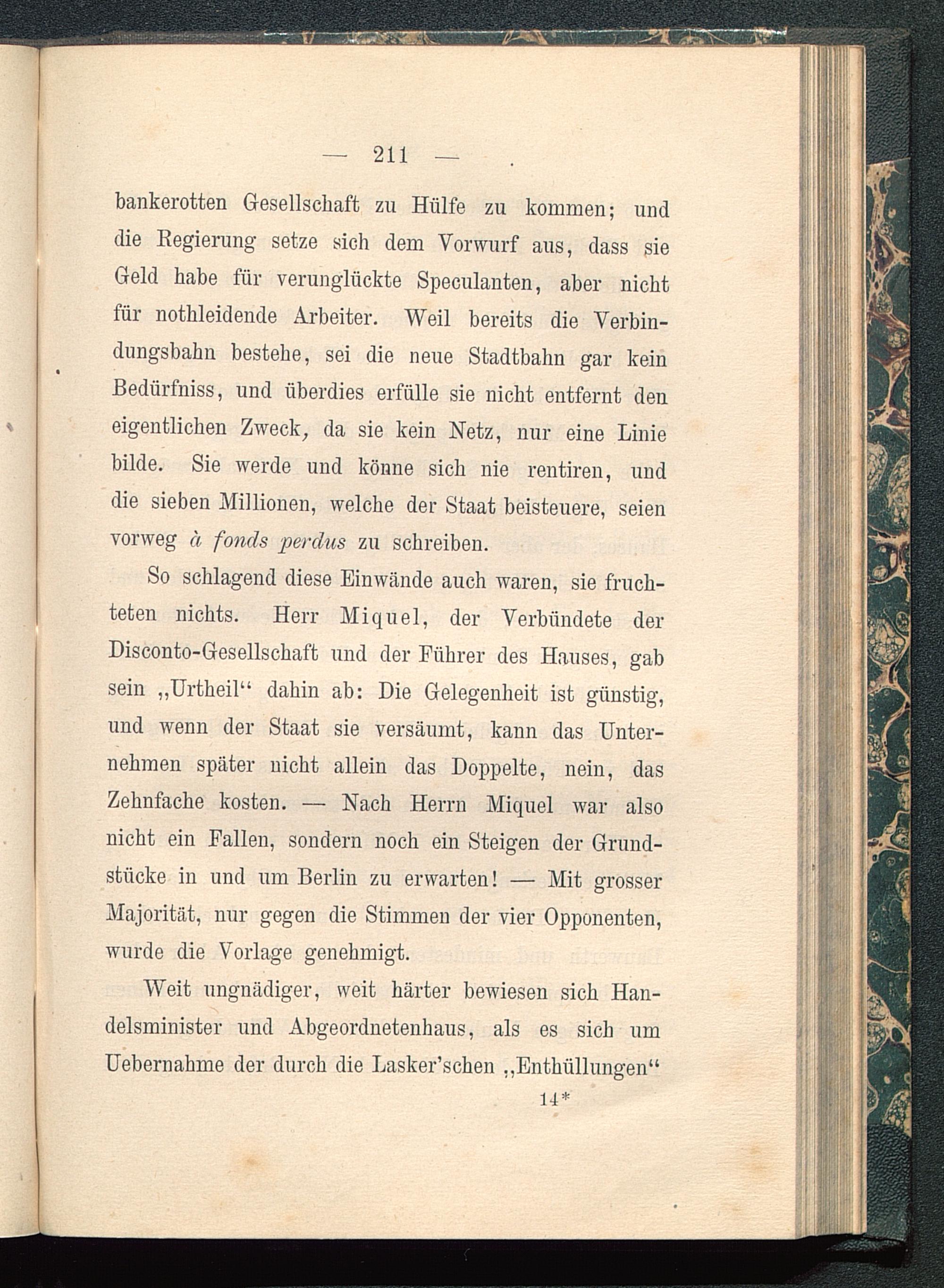 So schlagend diese Einwände auch waren, sie fruch-teten nichts. Herr Miquel, der Verbündete derDisconto-Gesellschaft und der Führer des Hauses, gabsein „Urtheil“ dahin ab: Die Gelegenheit ist günstig,und wenn der Staat sie versäumt, kann das Unter-nehmen später nicht allein das Doppelte, nein, dasZehnfache kosten. — Nach Herrn Miquel war alsonicht ein Fallen, sondern noch ein Steigen der Grund-stücke in und um Berlin zu erwarten! — Mit grosserMajorität, nur gegen die Stimmen der vier Opponenten,wurde die Vorlage genehmigt.