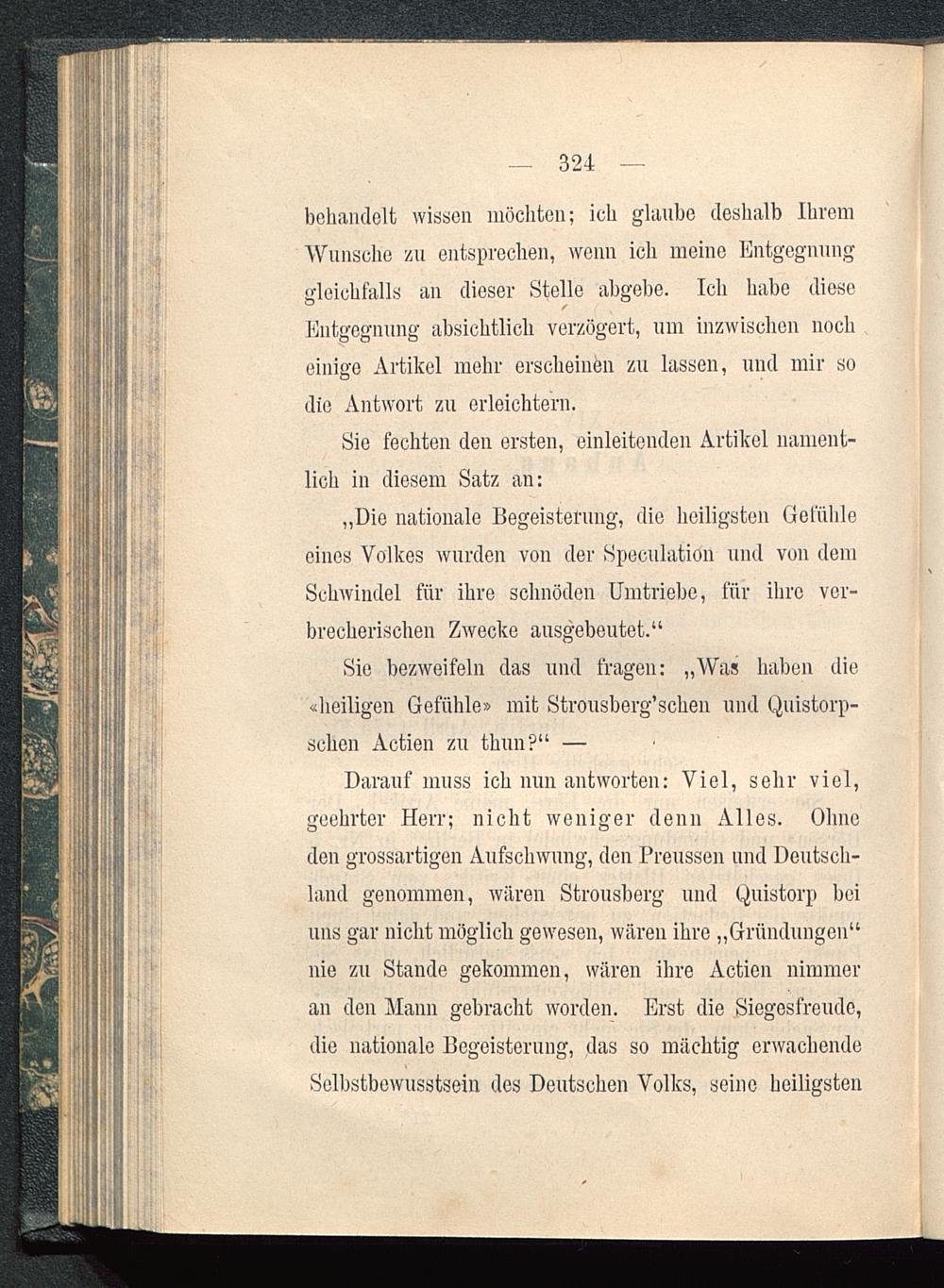 „Die nationale Begeisterung, die heiligsten Gefühleeines Volkes wurden von der Speculation und von demSchwindel für ihre schnöden Umtriebe, für ihre ver-brecherischen Zwecke ausgebeutet.“