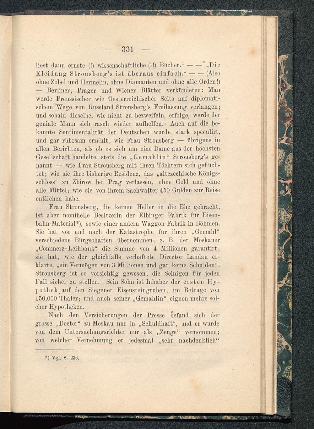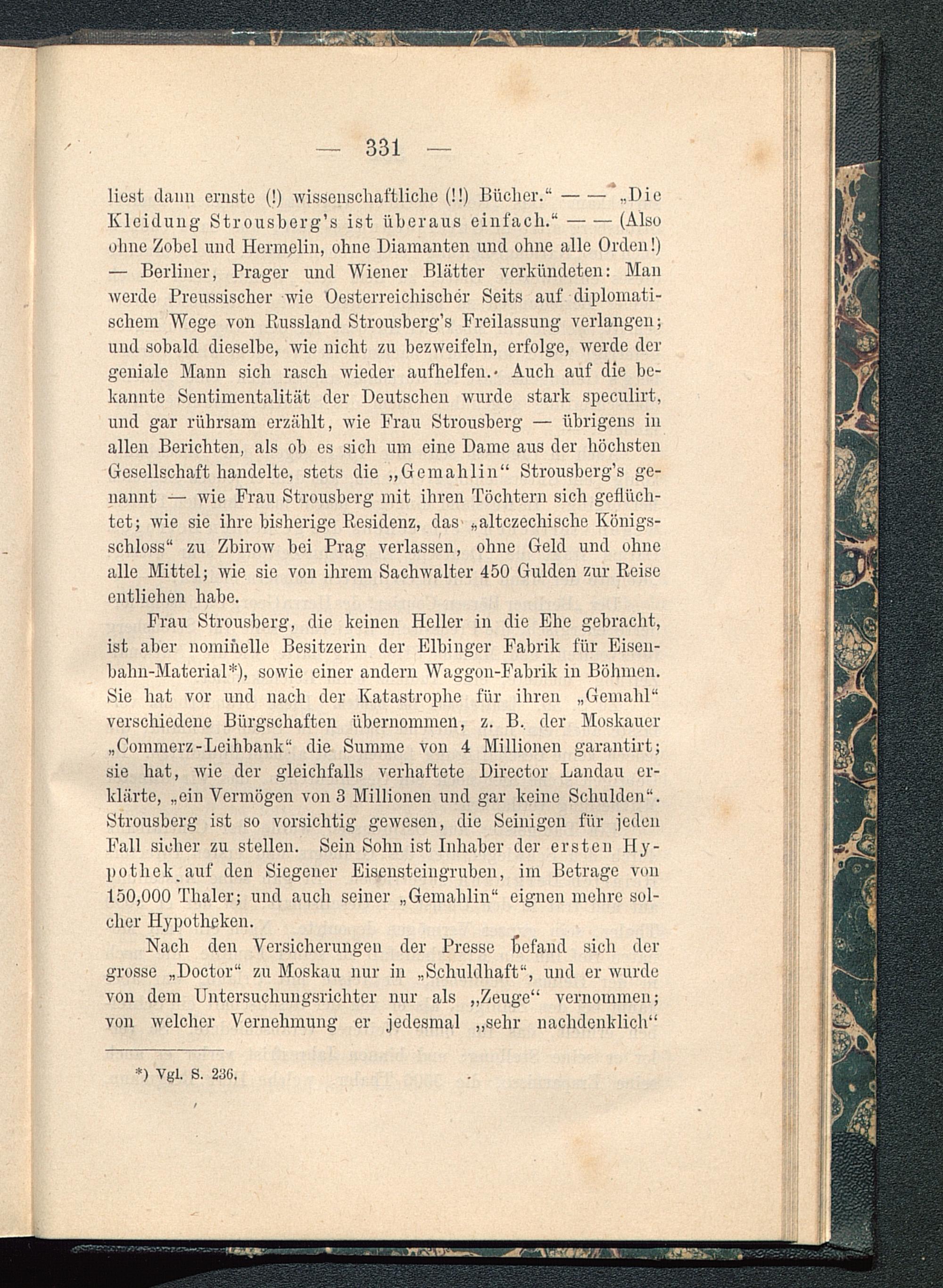 ohne Zobel und Hermplin, ohne Diamanten und ohne alle Orden!)— Berliner, Prager und Wiener Blätter verkündeten: Manwerde Preussischer wie Oesterreichisclier Seits auf diplomati-schem Wege von Russland Strousberg’s Freilassung verlangen;und sobald dieselbe, wie nicht zu bezweifeln, erfolge, werde dergeniale Mann sich rasch wieder aufhelfen.- Auch auf die be-kannte Sentimentalität der Deutschen wurde stark speculirt,und gar rübrsam erzählt, wie Frau Strousberg — übrigens inallen Berichten, als ob es sich um eine Dame aus der höchstenGesellschaft handelte, stets die „Gemahlin“ Strousberg’s ge-nannt — wie Frau Strousberg mit ihren Töchtern sich geflüch-tet; wie sie ihre bisherige Residenz, das- „altczechisehe Königs-schloss“ zu Zbirow bei Prag verlassen, ohne Geld und ohnealle Mittel; wie sie von ihrem Sachwalter 450 Gulden zur Reiseentliehen habe.