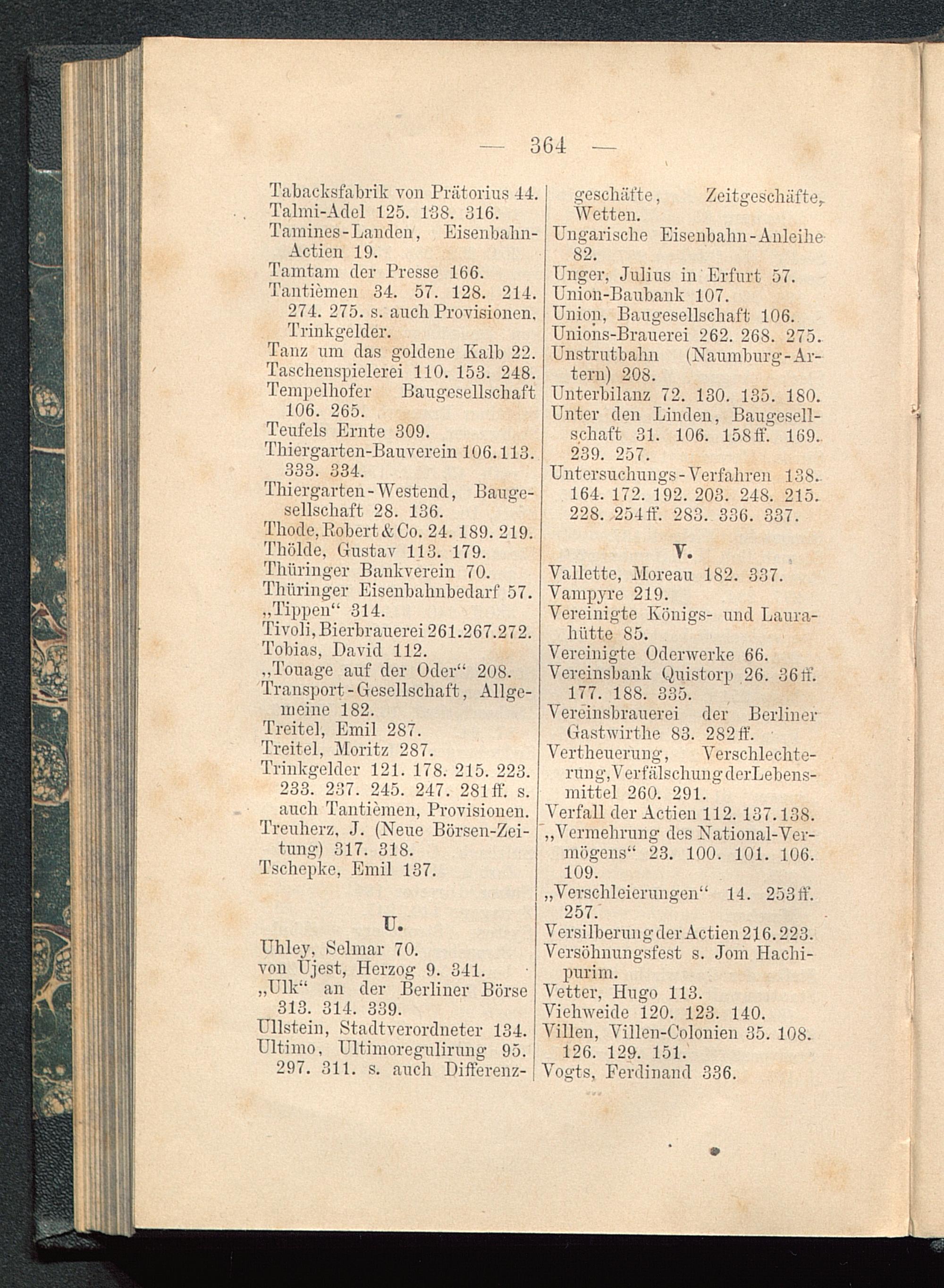 Uhley, Selmar 70.von Üjest, Herzog 9. 341.„Ulk“ an der Berliner Börse313. 314. 339.