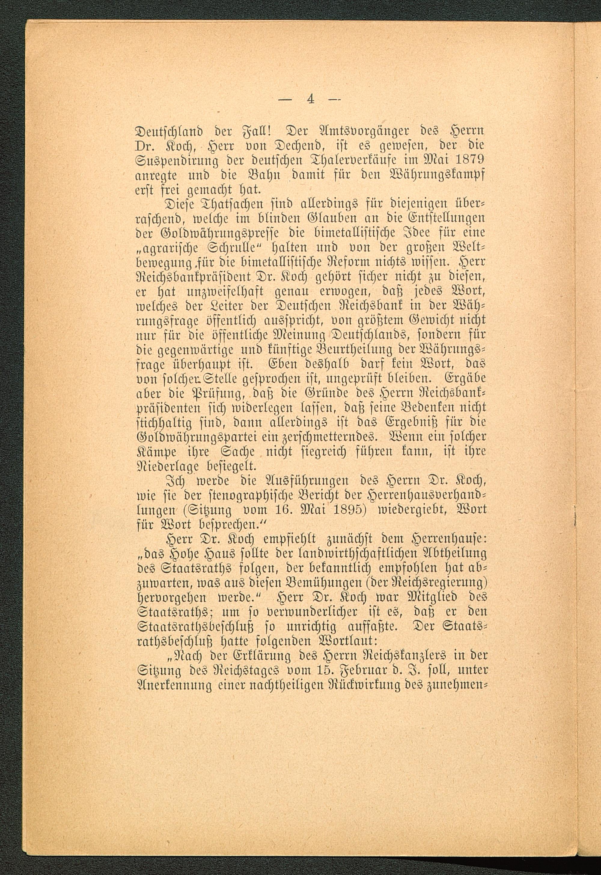 Ich werde die Ausführungen des Herrn Dr. Koch,wie sie der stenographische Bericht der Herrenhausverhand-luugen (Sitzung vom 16. Mai 1895) wiedergiebt, Wortfür Wort besprechen."