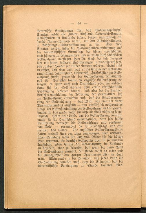 theoretische Erwägungen über das Währungsprinzip?Staaten, welche wie Indien, Rußland , Oesterreich-UngarnGoldschulden im Auslande haben, besitzen naturgemäß einstarkes Finanz-Interesse daran, mit den Gläubigerländernin Währungs - Uebereinstimmung zu sein. Aber dieseStaaten werden sicher die Währungsübereinstimmung aufder bimetallistischen Grundlage der schwer erreichbaren,noch schwerer zu behauptenden und wirthschaftlich schädlichenGoldwährung vorziehen. Herr Dr. Koch, der sich übrigenshier mit seinen früheren Ausführungen in Widerspruch setzt,daß „andre" Länder für Silber eintreten würden, scheint nichtzu wissen, daß eben das. was er als Erfolge der Goldwäh-rung rühmt, daßRußland, Oesterreich, „selbstChile" zurGold-währung strebt, grade für die Goldwährung verhängniß-voll ist. Die Welt konnte die englische Goldwährung er-tragen, es hätte auch noch Deutschland oder ein anderesLand sich der Goldwährung ohne ernste wirthschaftlicheSchädigung bedienen können, daß aber bei der heutigenVerkehrsentwickelung die Währung der Hauptländer sichzur Weltwährung entwickeln muß, daß die Verallgemeine-rung der Goldwährung — das Ideal, das man vor einemVierteljahrhundert aufstellte — nun wirklich die nothwendigeFolge der Aufrechterhaltung der Goldwährung in den Haupt-ftaaten ist, das grade macht für diese die Goldwährung so ge-fährlich. Jedes neue Land, das die Goldwährung einführt,macht sie für Deutschland unerträglicher, denn jede solcheEinführung vermehrt die Goldnachfrage und vertheuertdas Gold — vermindert die Silbernachfrage und ent-wertet das Silber. Die englischen Goldwährungsleutehaben deshalb stets den zwar engherzigen, aber verständ-lichen Grundsatz Gold für England, Silber für die übrigeWelt vertreten, die deutsche Goldpartei aber ist so überauskurzsichtig, jeden Erfolg der Goldwährung im Auslandezu bejubeln, ohne zu bedenken, daß wenn die ganze Weltdie Goldwährung einführt, der Krach gleich da wäre unddie Unmöglichkeit des ganzen Experiments offen zu Tageträte. Allein grade in der Gewißheit, daß jedes Land dieGoldwährung erstreben muß, liegt die Sicherheit, daß diebimetallistische Vereinigung zu Stande kommen wird.
