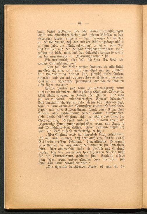 ,,Nun soll eine Reihe großer Staaten, die allmählichzur Goldwährung, wenn auch zum Theil nur zur „hinken-den" Goldwährung gelangt sind, plötzlich dieses Systemaufgeben und ein mindern?erthiges System annehmen.Das ist eine eigenartige Zumuthung, der sich die Staatennicht fügen werden."