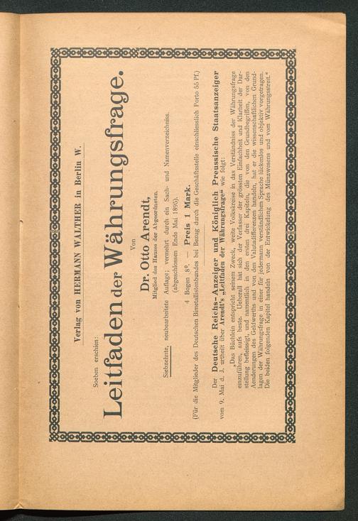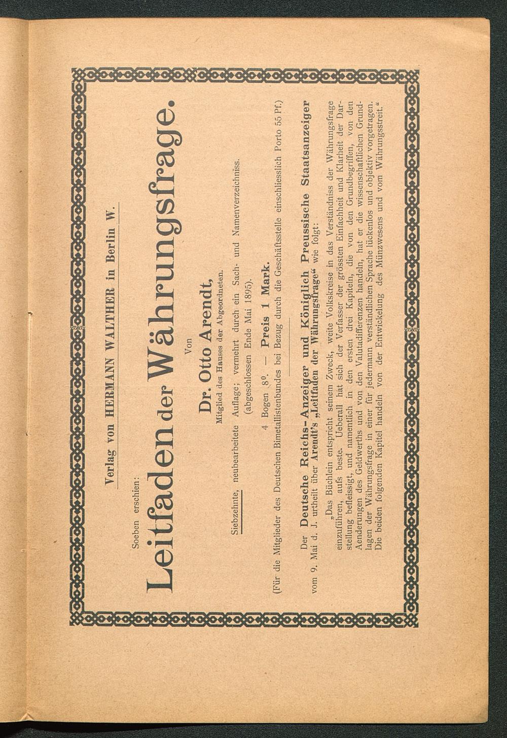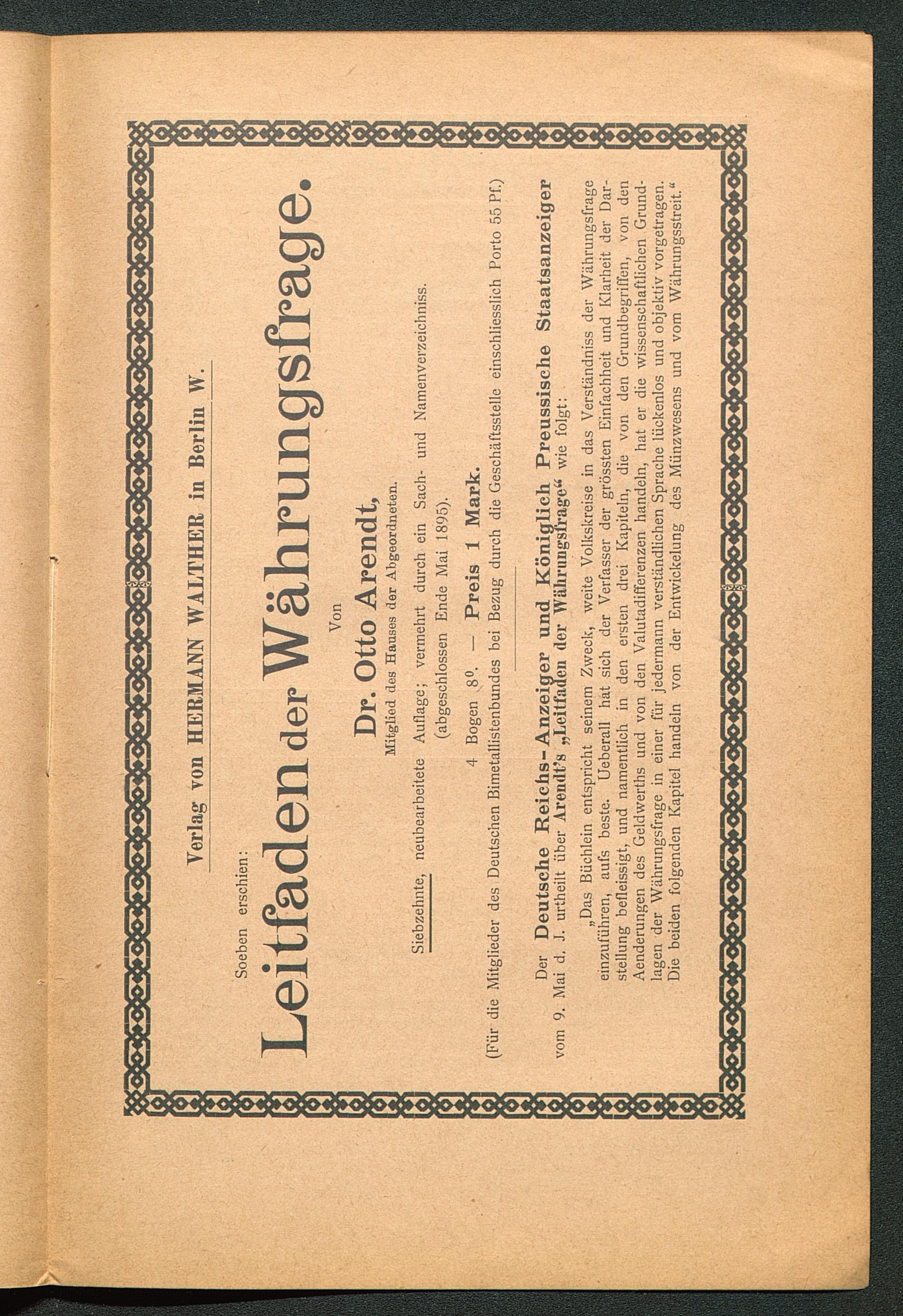 Herr Reichsbankpräsident Dr. Koch und die Währungsfrage : eine Antwort auf die Herrenhausrede des Herrn Dr. Koch vom 16. Mai 1895 / von Otto Arendt