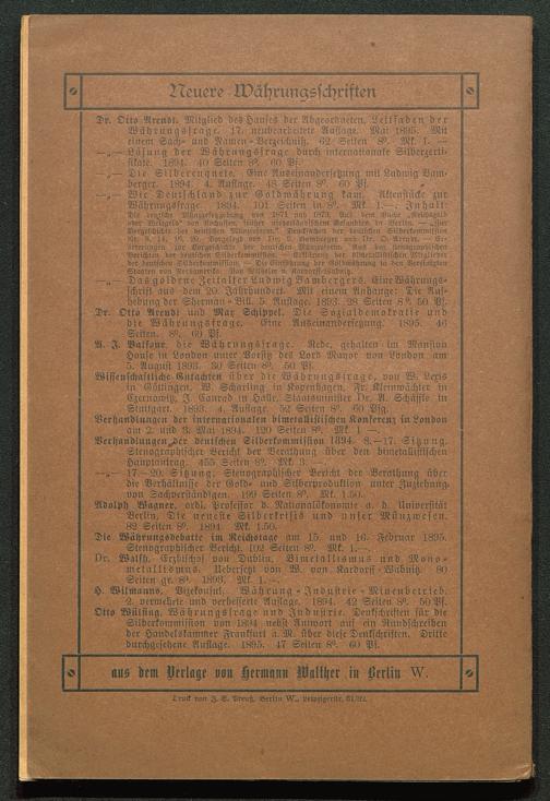 Die Wiihrunasdcbatte im Reichstage am 15. nnd 16- Fcbrnar 1895.Stenographischer Bericht. 102 Seiten 8°. Mk. 1.—.