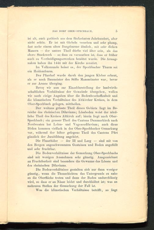 Bevor wir nun zur Einzeldarstellung der landwirth-schaftlichen Verhältnisse der Gemeinde übergehen, wollenwir noch einige Angaben über die Bodenbeschaffenheit unddie klimatischen Verhältnisse des Altkircher Kreises, in demOber-Spechbach gelegen, mittheilen.