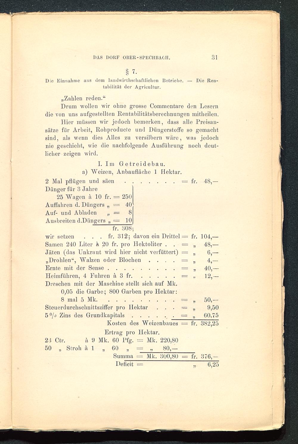 Kosten des Weizenbaues = fr. 382,25Ertrag pro Hektar.