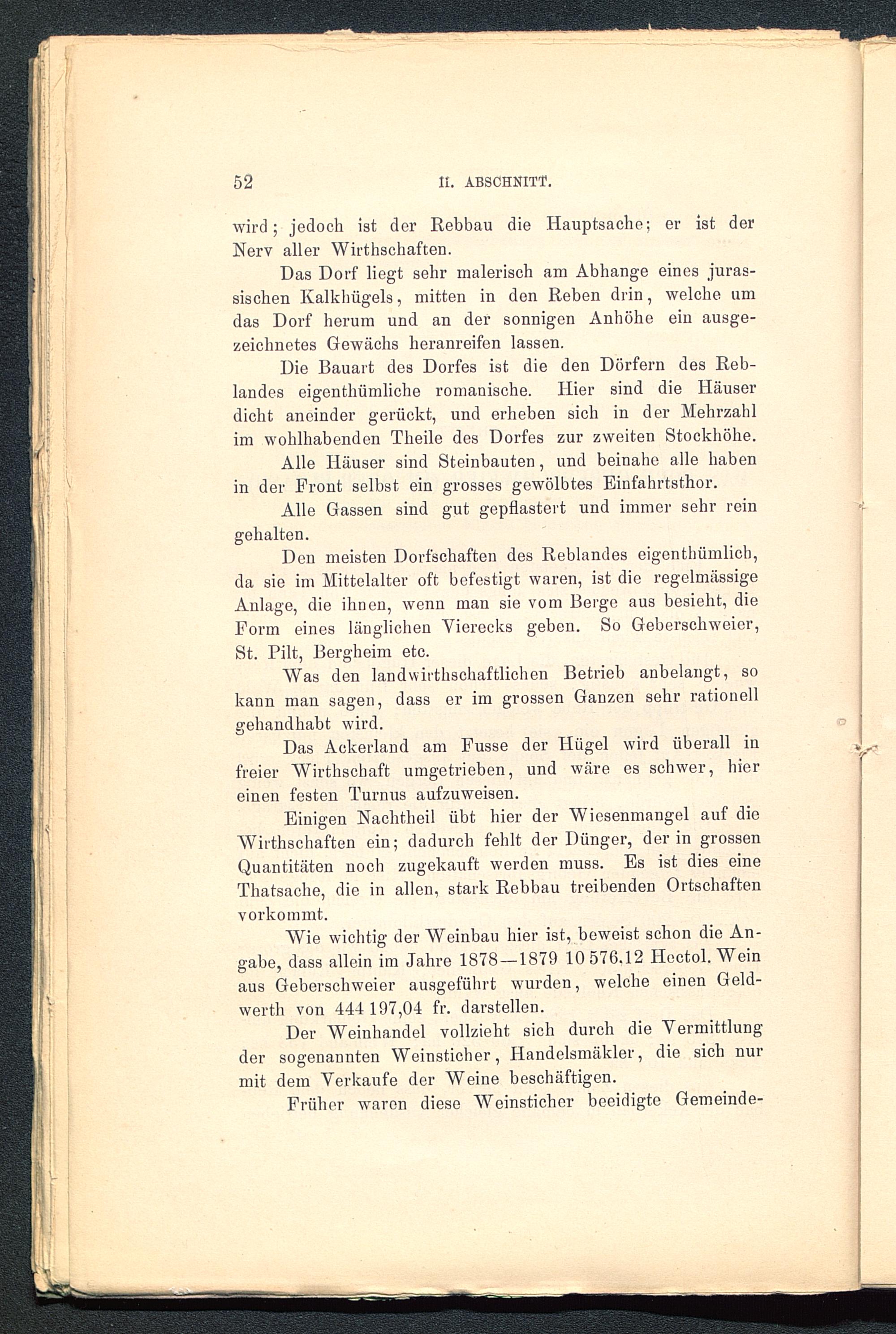 Wie wichtig der Weinbau hier ist, beweist schon die An-gabe, dass allein im Jahre 1878 —1879 10 576.12 Hectol. Weinaus Geberschweier ausgeführt wurden, welche einen Geld-werth von 444 197,04 fr. darstellen.